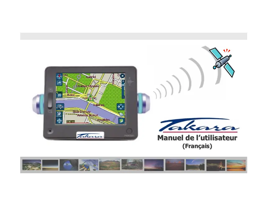 Manuel de l’ utilisateur (Français) « Merci d’ avoir choisi et acheté le système de navigation Takara, le plus complet du marché. » ü Processeur pour garantir des performances exceptionnellement puissantes ü Ecran LCD numérique doté d’ une luminosité extrêmement élevée, d’ un traitement anti-reflet, de millions de couleurs et d’ un affichage de type paysage ü Fonction multimédia haute qualité supportant la navigation, la musique (MP3), la vidéo (MPEG4) et les photos (JPEG). ü GPS très rapide (SIRFIIstar/SIRFIIXtrac) présentant fièrement une démarrage extrêmement rapide à chaud ou à froid ainsi qu’ une extension vers l’ antenne externe ü Conception élégante, chic, unique soulignée par les voyants de virage ü Logiciel basé sur Microsoft WinCE .Net et application de navigation + données cartographiques faciles à utiliser préinstallées sur la carte SD « Afin de valider la garantie et de rejoindre le Club Navigation Mobile Takara, il est impératif d'enregistrer le numéro de l'appareil, vos nom et adresse, et votre adresse e-mail. Grâce au Club Navigation Mobile Takara, vous pourrez bénéficier des multiples services nécessaires à une parfaite évolution de votre Navigation Takara. Le Service Relations Clientèle. »