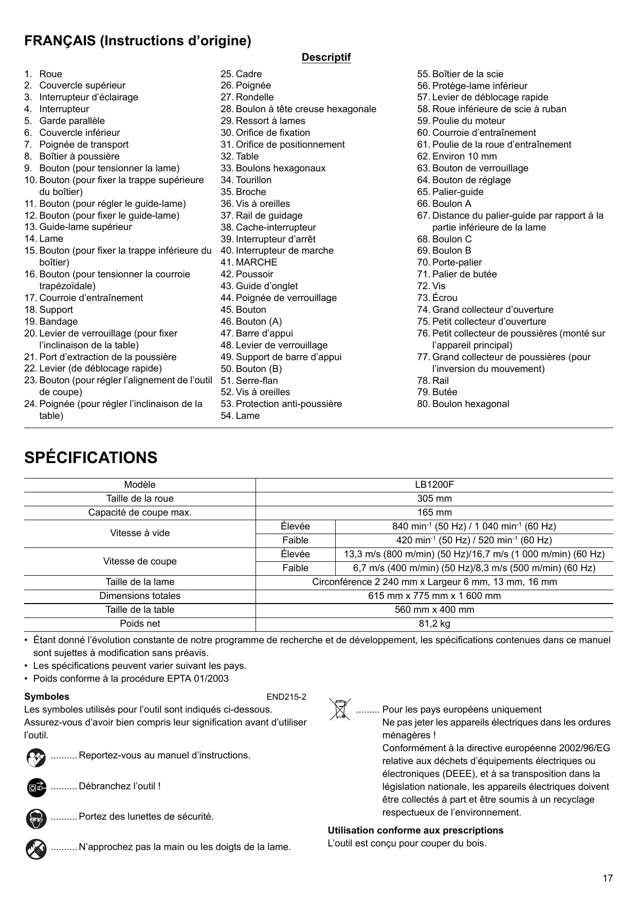FRANÇAIS (Instructions d’origine) Descriptif