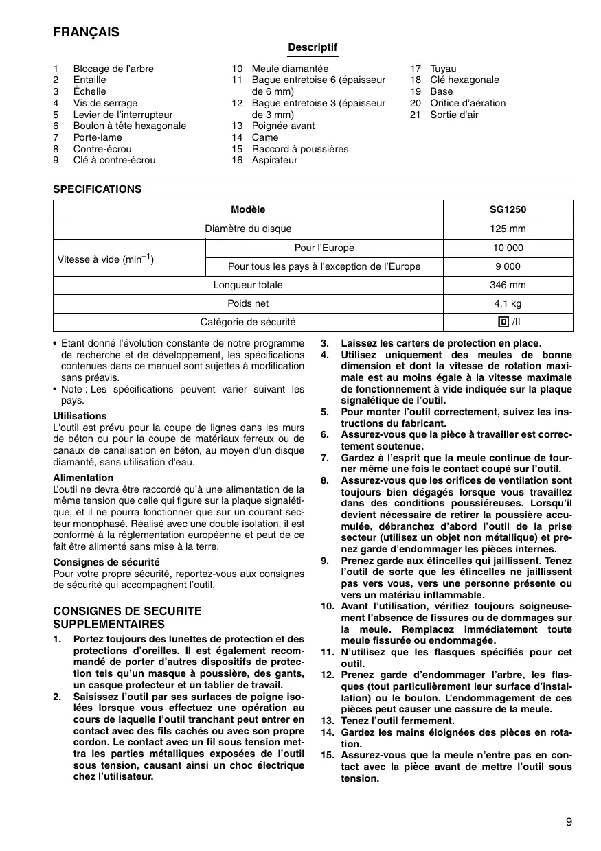 MODE D'EMPLOI SG1250 MAKITA