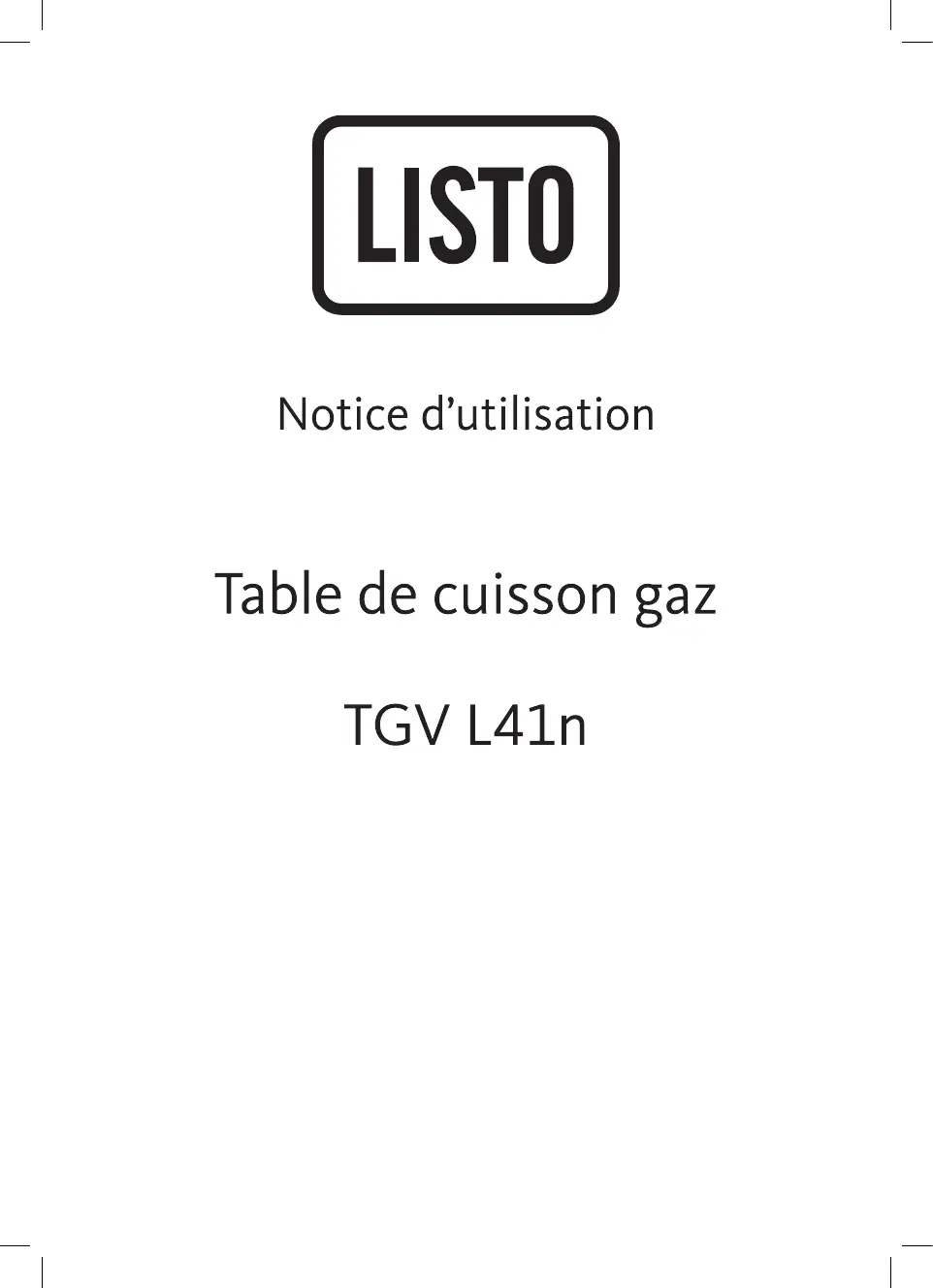 TGV L41N - Plaque de cuisson LISTO - Notice d'utilisation et mode d'emploi gratuit