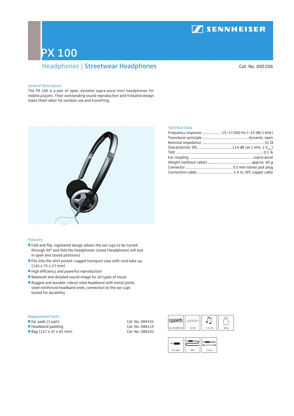 PX 100 - Casque audio SENNHEISER - Notice d'utilisation et mode d'emploi gratuit