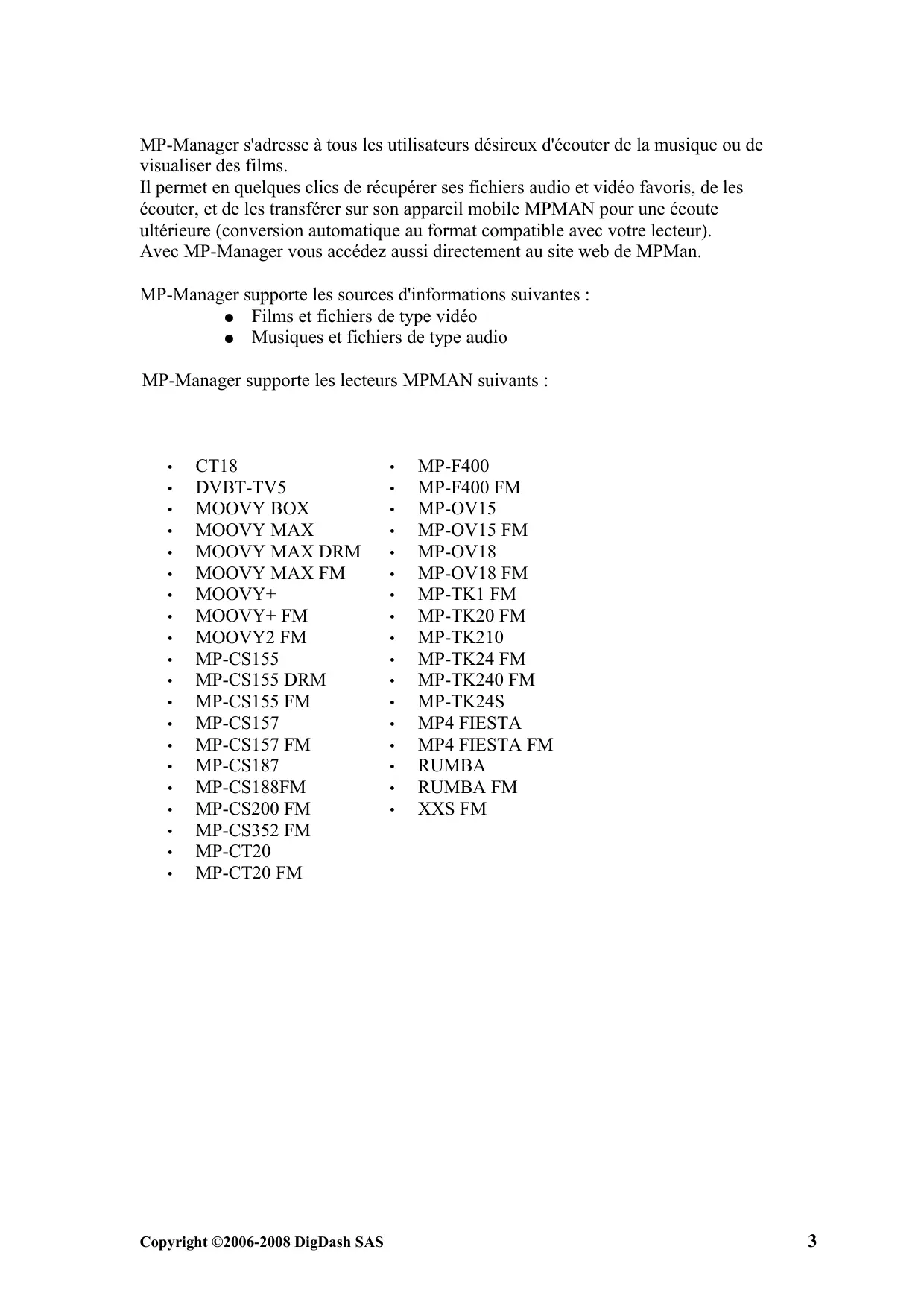 MP-Manager supporte les lecteurs MPMAN suivants :
