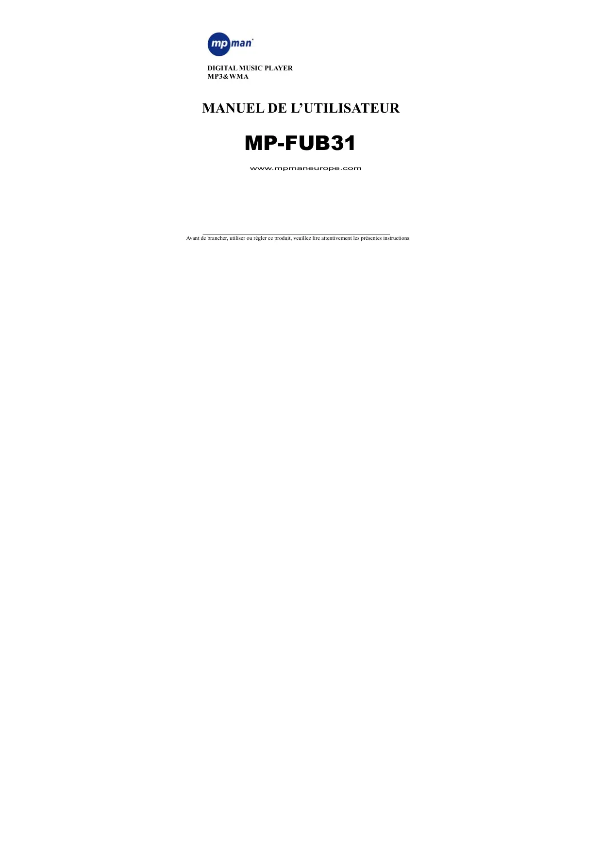 Retrouvez gratuitement la notice de l'appareil MP-FUB31 MPMAN au format PDF.