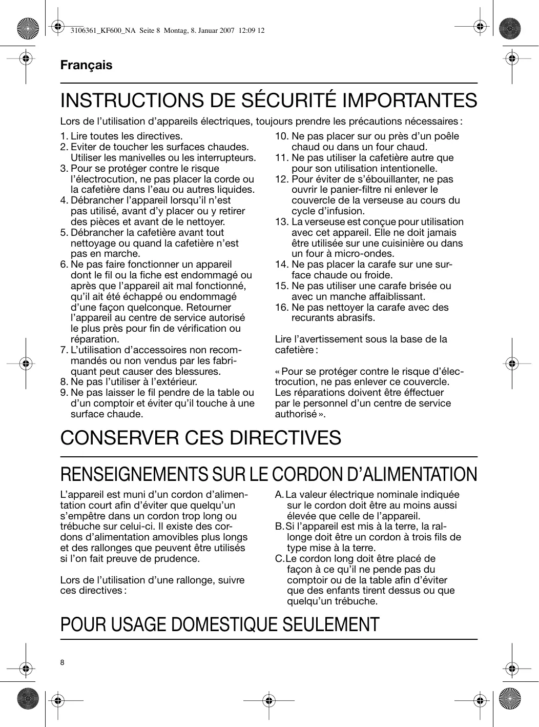 Retrouvez gratuitement la notice de l'appareil KF610 BRAUN au format PDF.