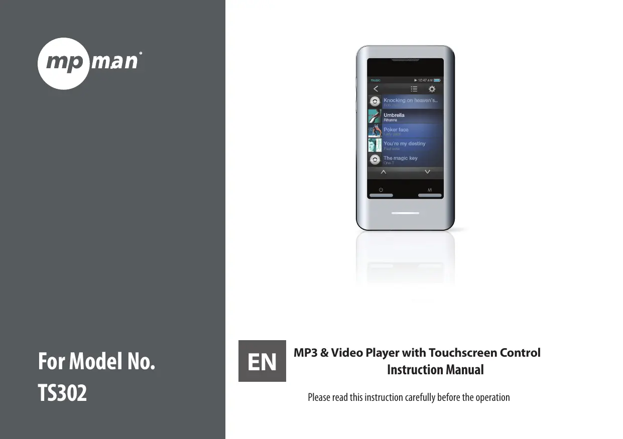 Téléchargez la notice de votre Lecteur multimédia portable au format PDF gratuitement ! Retrouvez votre notice TS 302 - MPMAN et reprennez votre appareil électronique en main. Sur cette page sont publiés tous les documents nécessaires à l'utilisation de votre appareil TS 302 de la marque MPMAN.