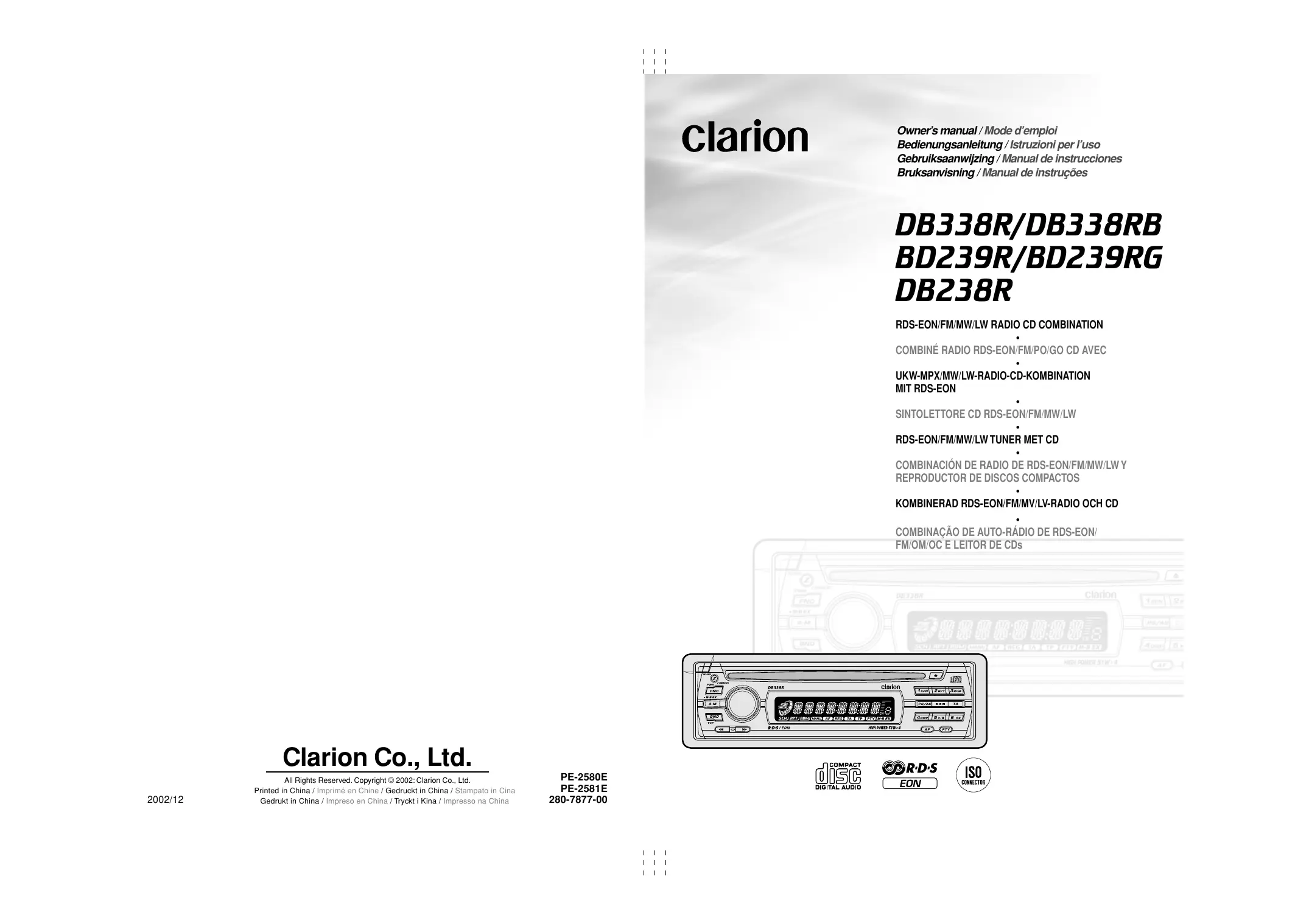 Retrouvez gratuitement la notice de l'appareil DB338RB CLARION au format PDF.