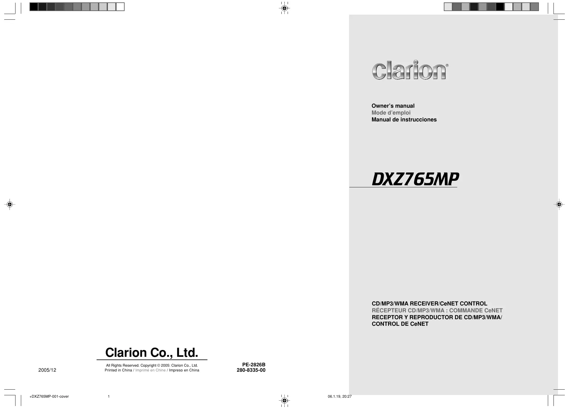 Retrouvez gratuitement la notice de l'appareil DXZ765MP CLARION au format PDF.