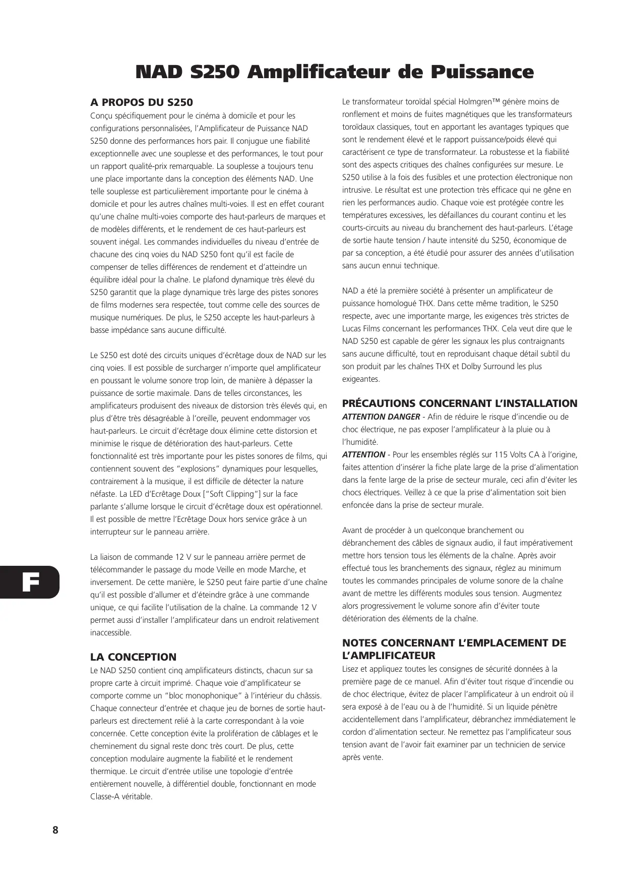 S250 - Amplificateur de puissance NAD - Notice d'utilisation et mode d'emploi gratuit