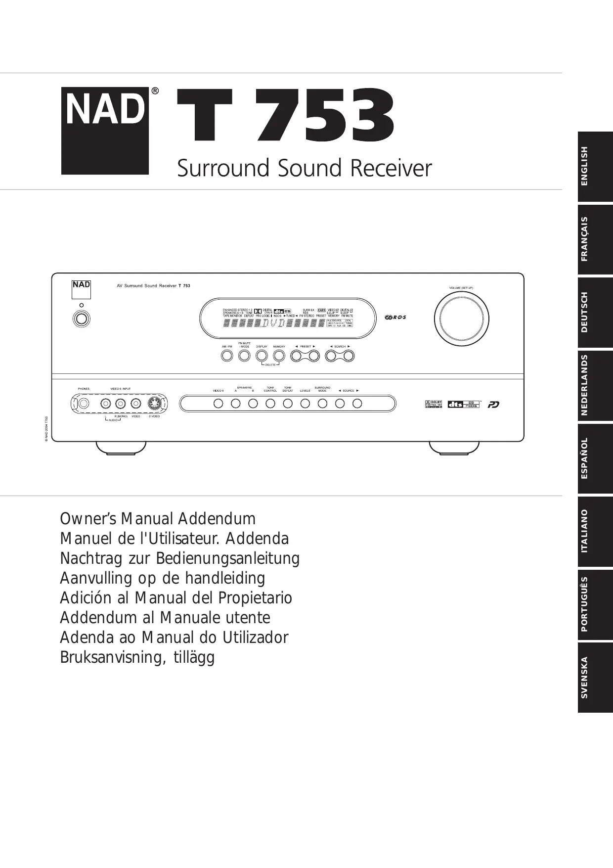 Retrouvez gratuitement la notice de l'appareil T753 NAD au format PDF.