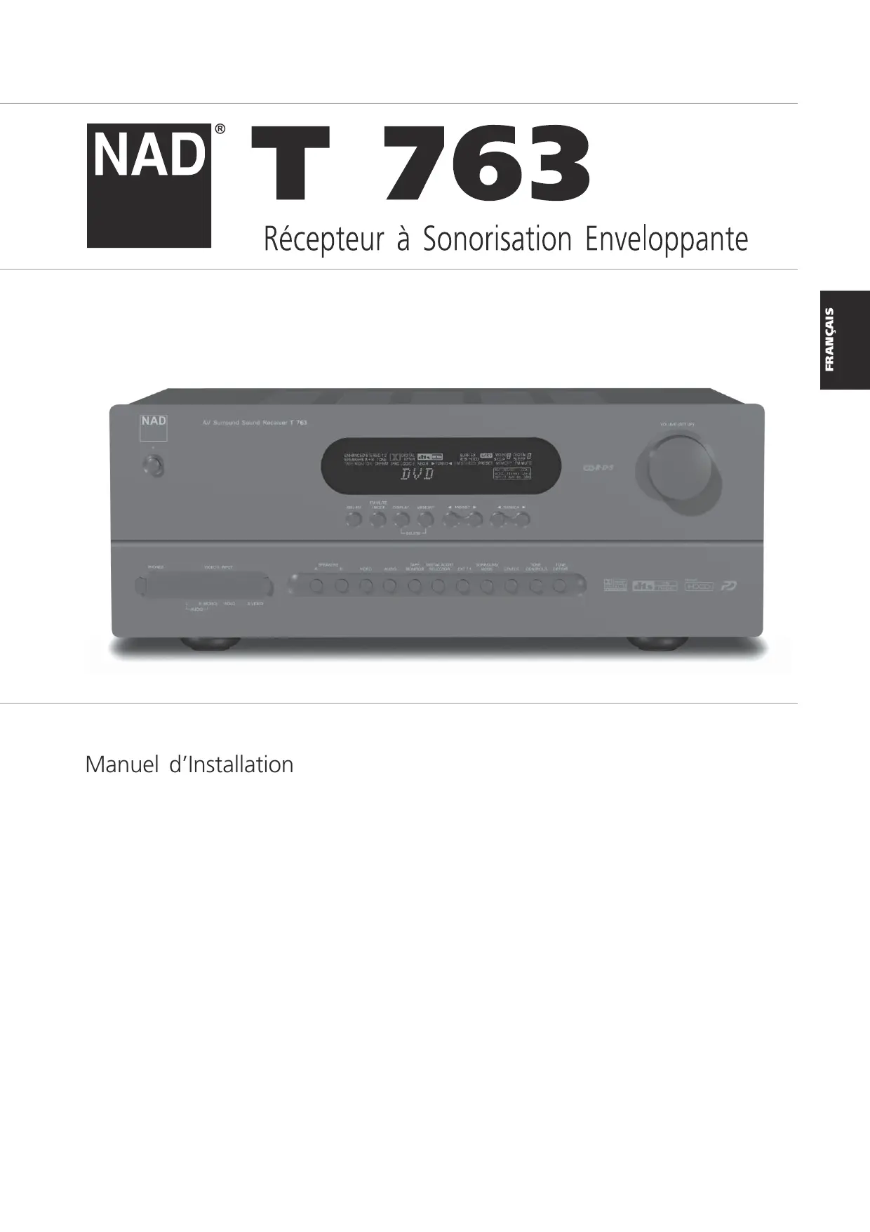 Téléchargez la notice de votre Récepteur audio/vidéo au format PDF gratuitement ! Retrouvez votre notice T763 - NAD et reprennez votre appareil électronique en main. Sur cette page sont publiés tous les documents nécessaires à l'utilisation de votre appareil T763 de la marque NAD.