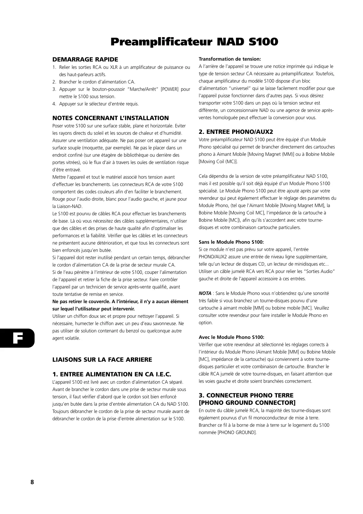 -S100 - NAD - Notice d'utilisation et mode d'emploi gratuit