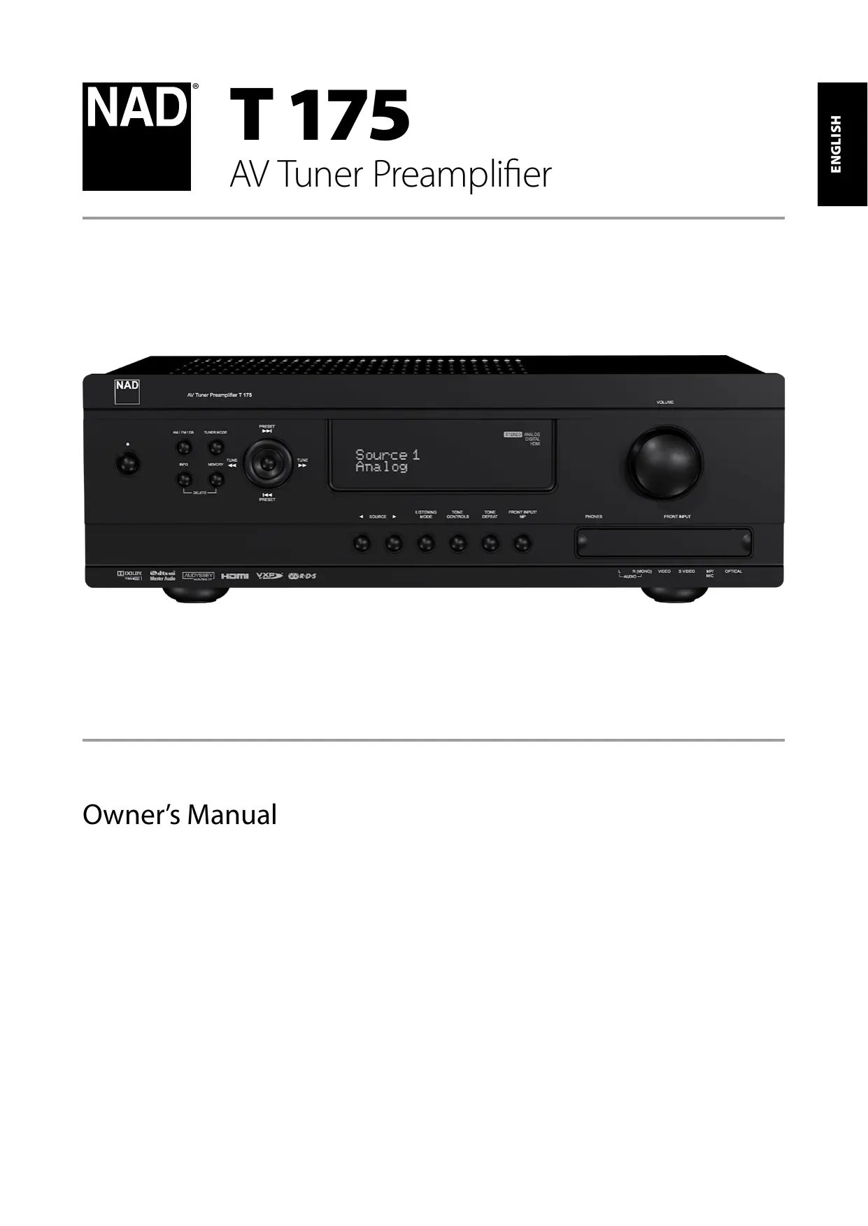 T175 HD - Récepteur audio/vidéo NAD - Notice d'utilisation et mode d'emploi gratuit