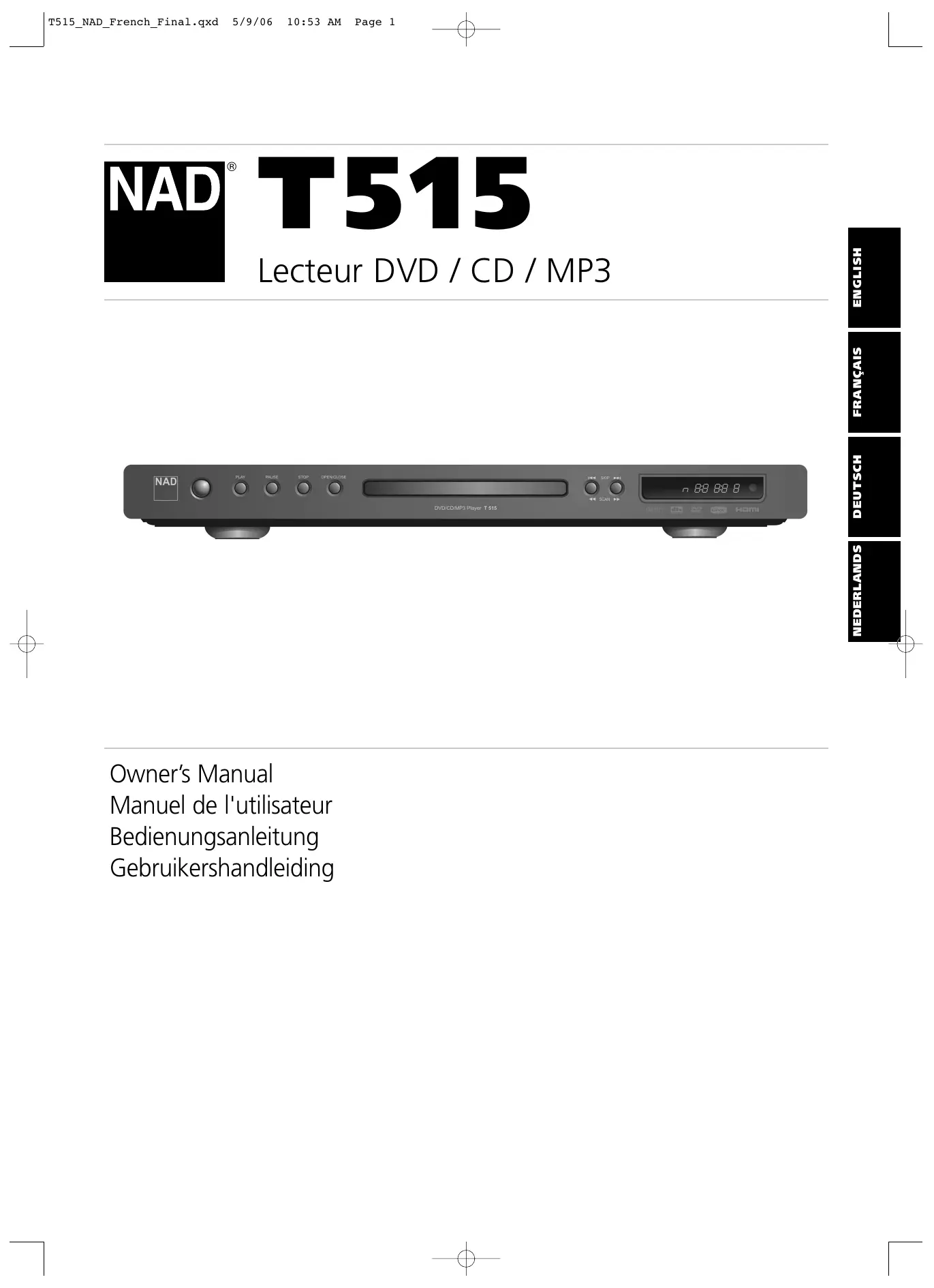 Retrouvez gratuitement la notice de l'appareil T515 NAD au format PDF.