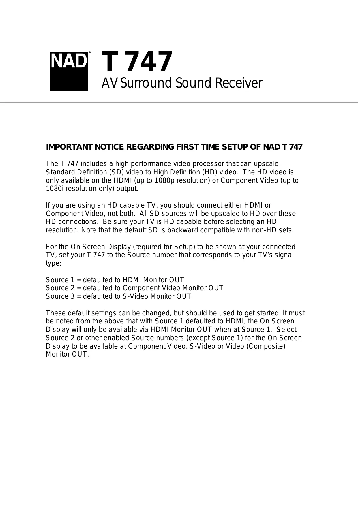 Retrouvez gratuitement la notice de l'appareil T747 NAD au format PDF.