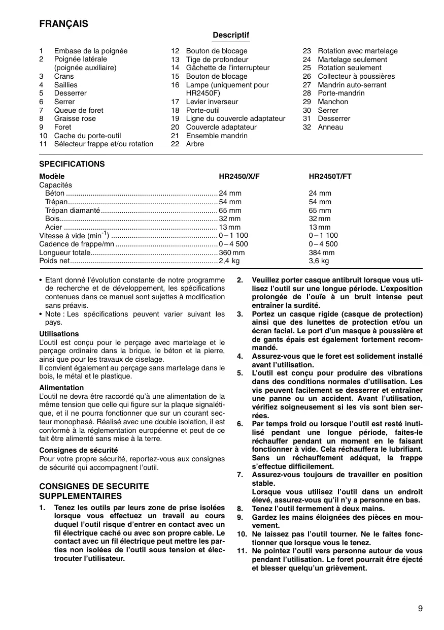 Retrouvez gratuitement la notice de l'appareil HR2450X8 MAKITA au format PDF.