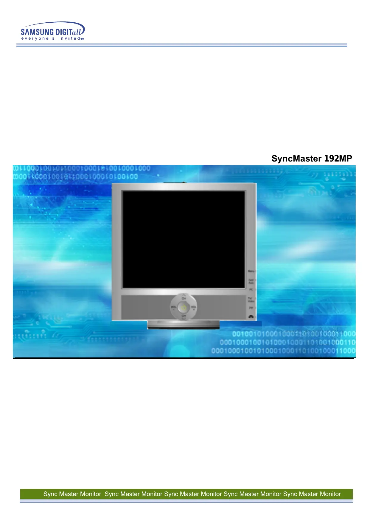 Téléchargez la notice de votre Moniteur au format PDF gratuitement ! Retrouvez votre notice SYNCMASTER 192MP - SAMSUNG et reprennez votre appareil électronique en main. Sur cette page sont publiés tous les documents nécessaires à l'utilisation de votre appareil SYNCMASTER 192MP de la marque SAMSUNG.