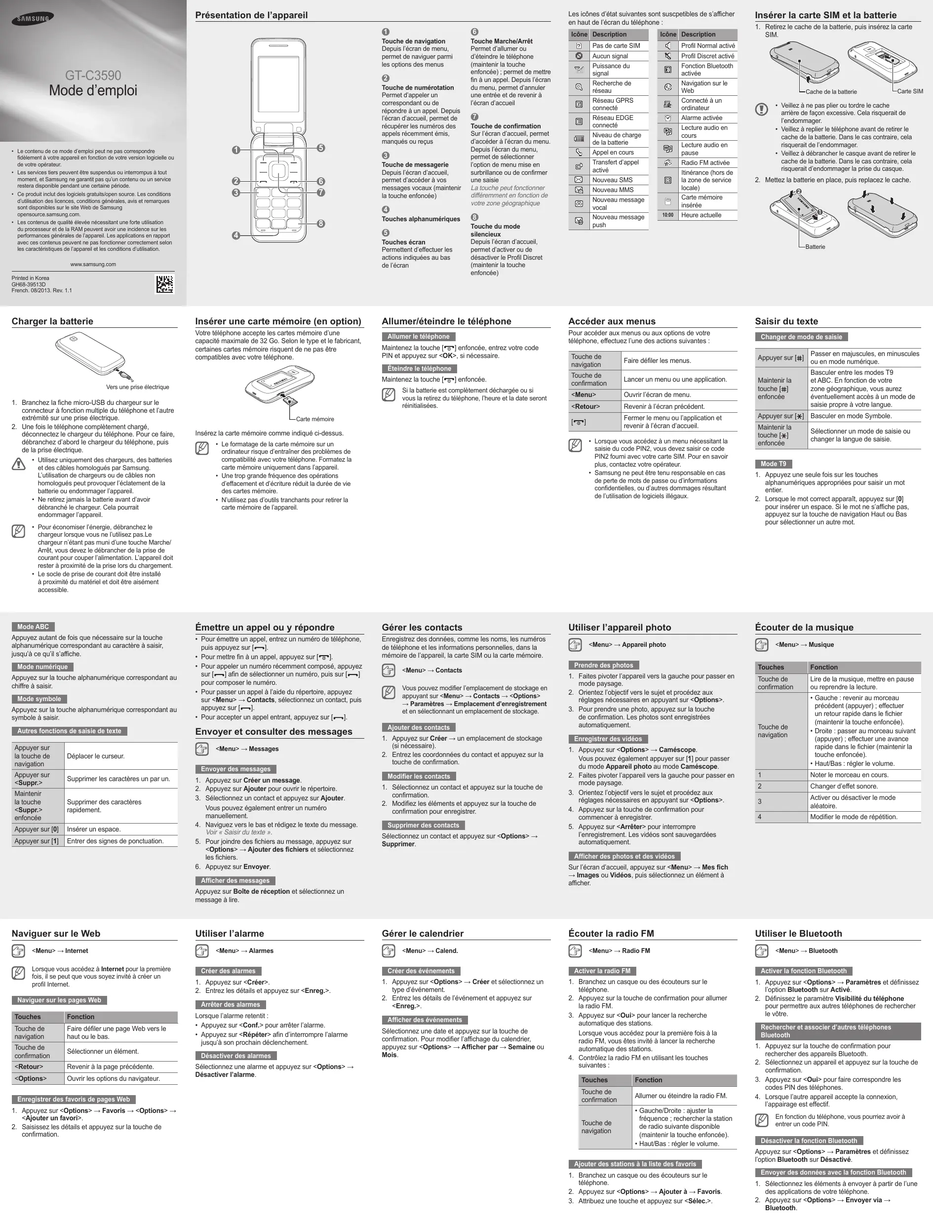 Retrouvez gratuitement la notice de l'appareil MOBILE GT-C3590 À CLAPET - GT-C3590 SAMSUNG au format PDF.