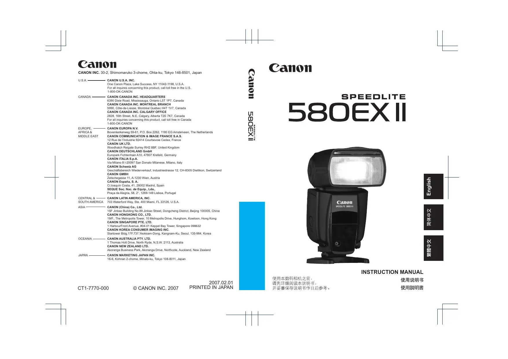 SPEEDLITE 580EX II - Flash externe CANON - Notice d'utilisation et mode d'emploi gratuit