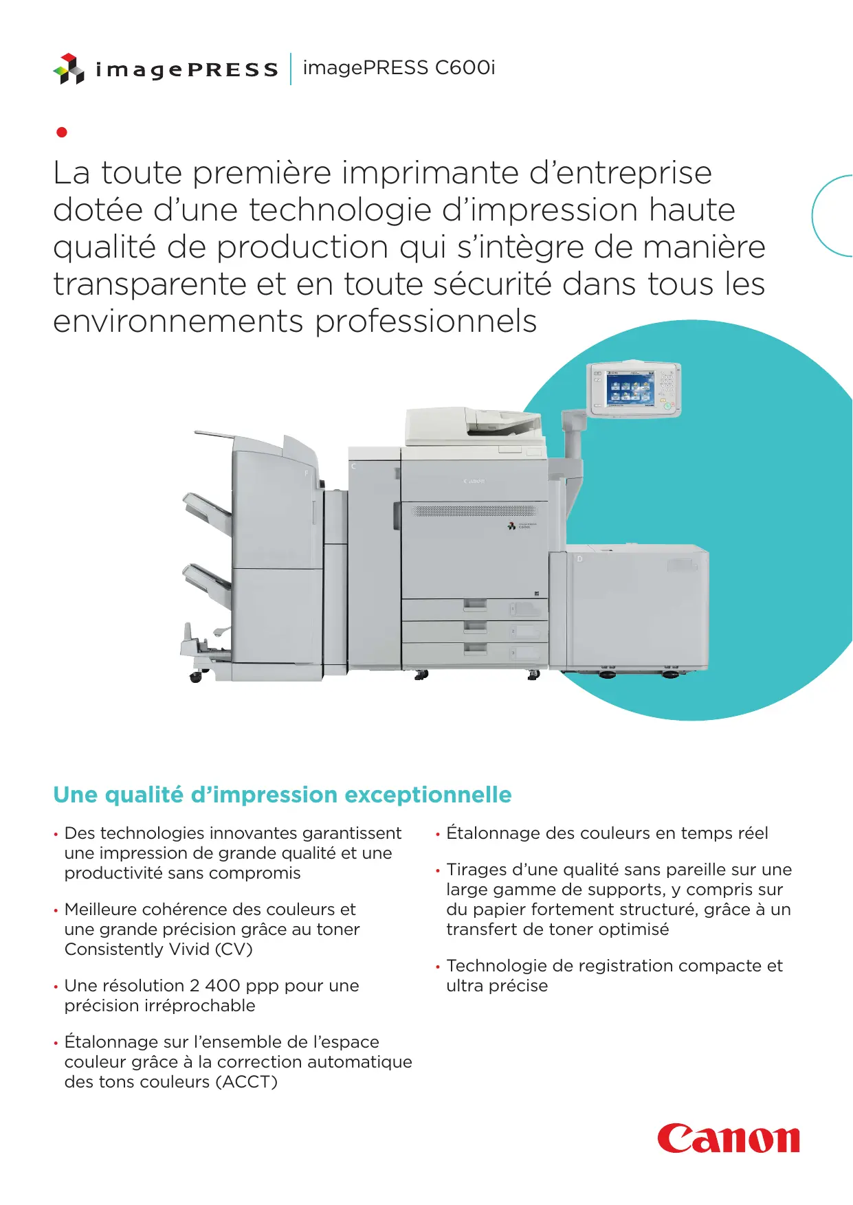 Retrouvez gratuitement la notice de l'appareil IMAGEPRESS C600I CANON au format PDF.