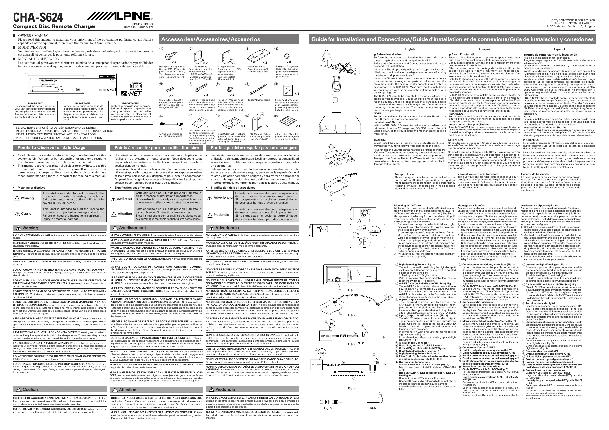 Retrouvez gratuitement la notice de l'appareil CHA-S624 ALPINE au format PDF.
