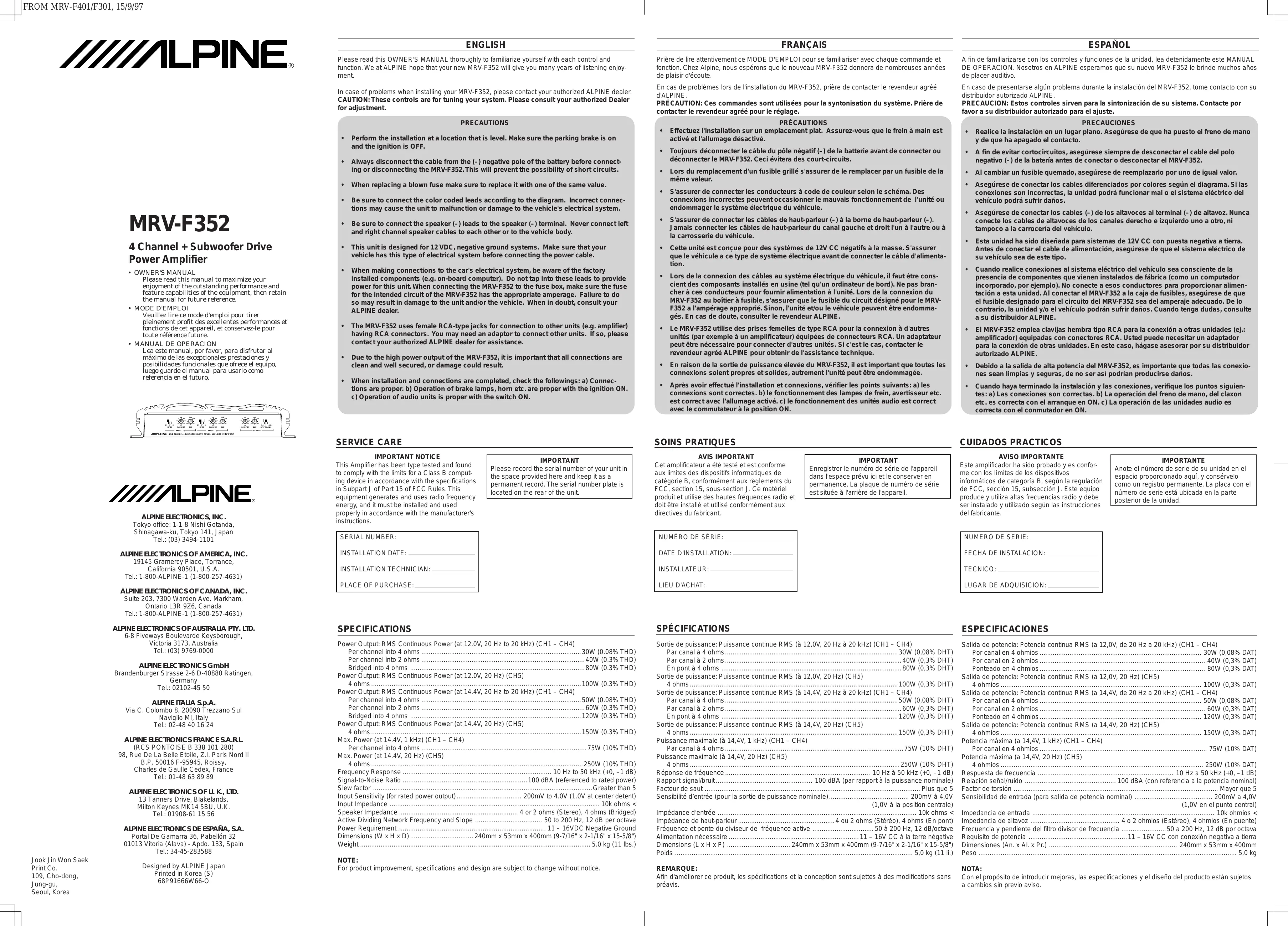 MRV-F352 - Amplificateur de voiture ALPINE - Notice d'utilisation et mode d'emploi gratuit