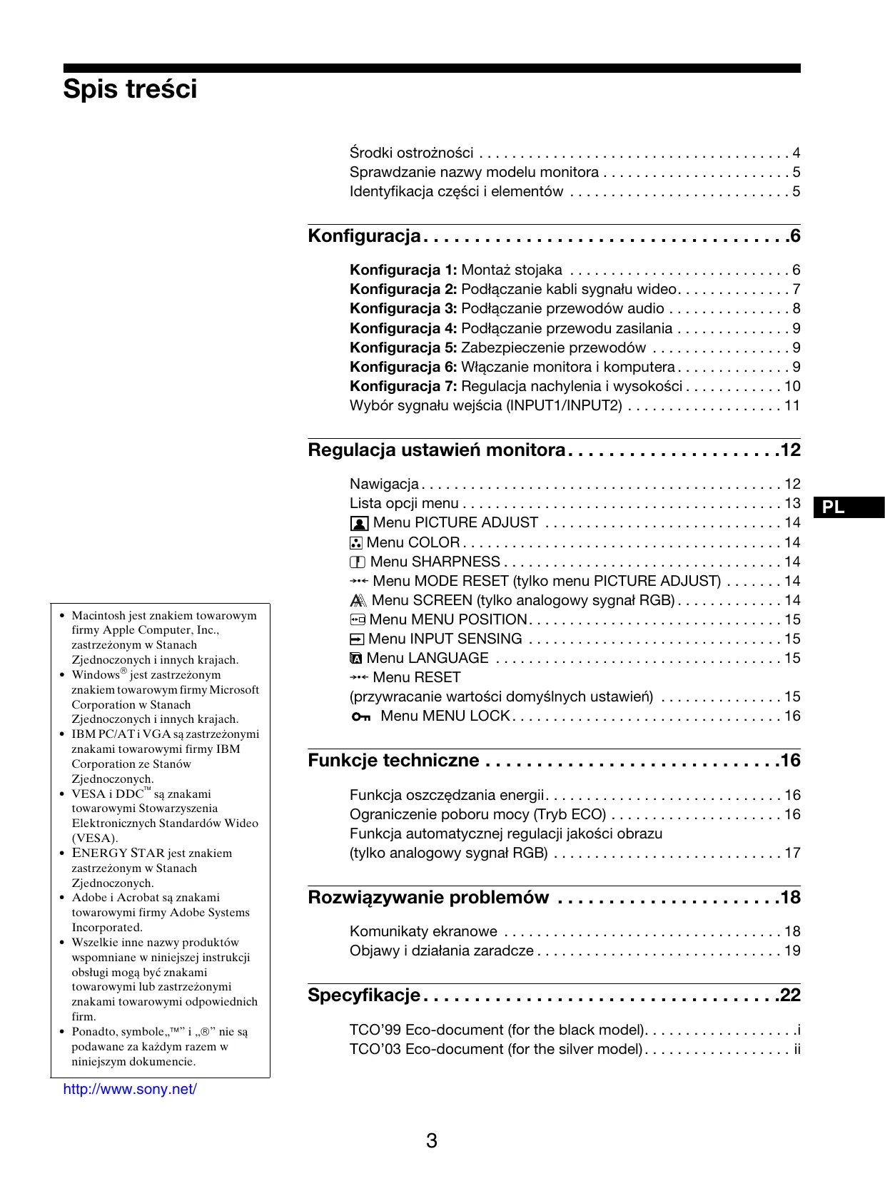 SDM-S95DR - Monitor komputerowy SONY - Bezpłatna instrukcja obsługi