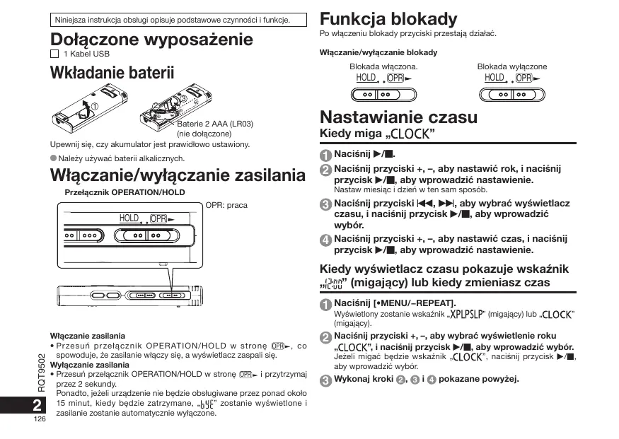 - Nale¿y u¿ywaæ baterii alkalicznych. W³¹czanie/wy³¹czanie zasilania przycisk q/g, aby wprowadziæ nastawienie. Nastaw miesi¹c i dzieñ w ten sam sposób. Prze³¹cznik OPERATION/HOLD OPR: praca 3 Naciśnij przyciski u, i, aby wybraæ wyświetlacz