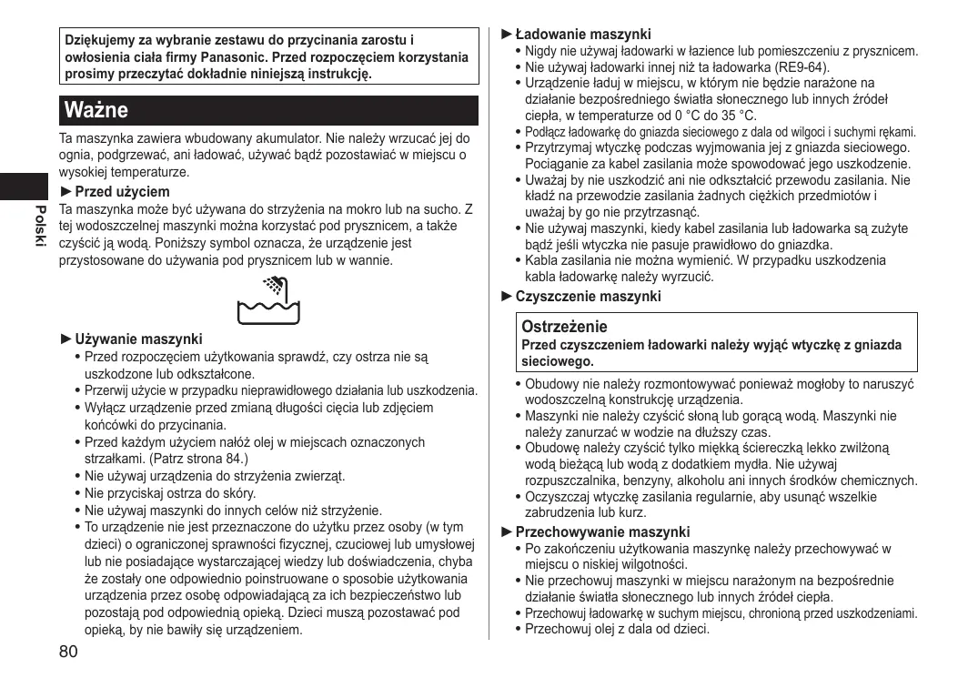 Dziękujemy za wybranie zestawu do przycinania zarostu i owłosienia ciała firmy Panasonic. Przed rozpoczęciem korzystania prosimy przeczytać dokładnie niniejszą instrukcję.
