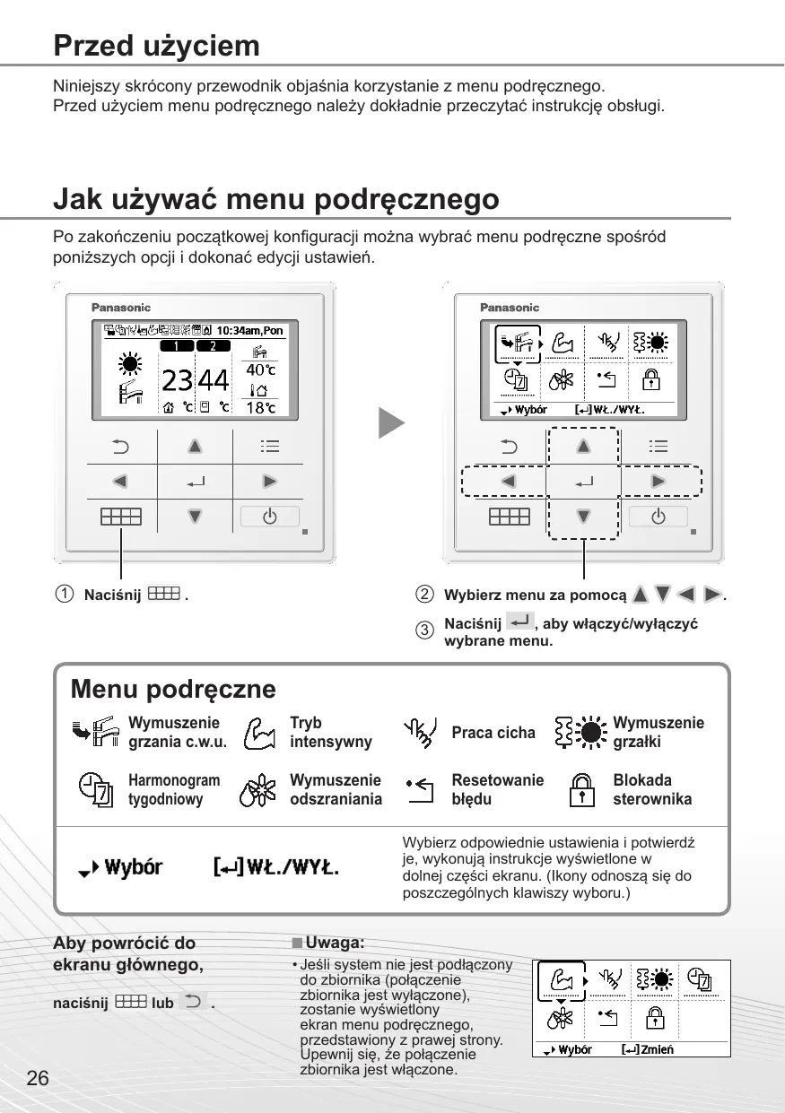 Pobierz instrukcję dla swojego Klimatyzator w formacie PDF za darmo! Znajdź swoją instrukcję WH-UX12HE5 - PANASONIC i weź swoje urządzenie elektroniczne z powrotem w ręce. Na tej stronie opublikowane są wszystkie dokumenty niezbędne do korzystania z urządzenia. WH-UX12HE5 marki PANASONIC.