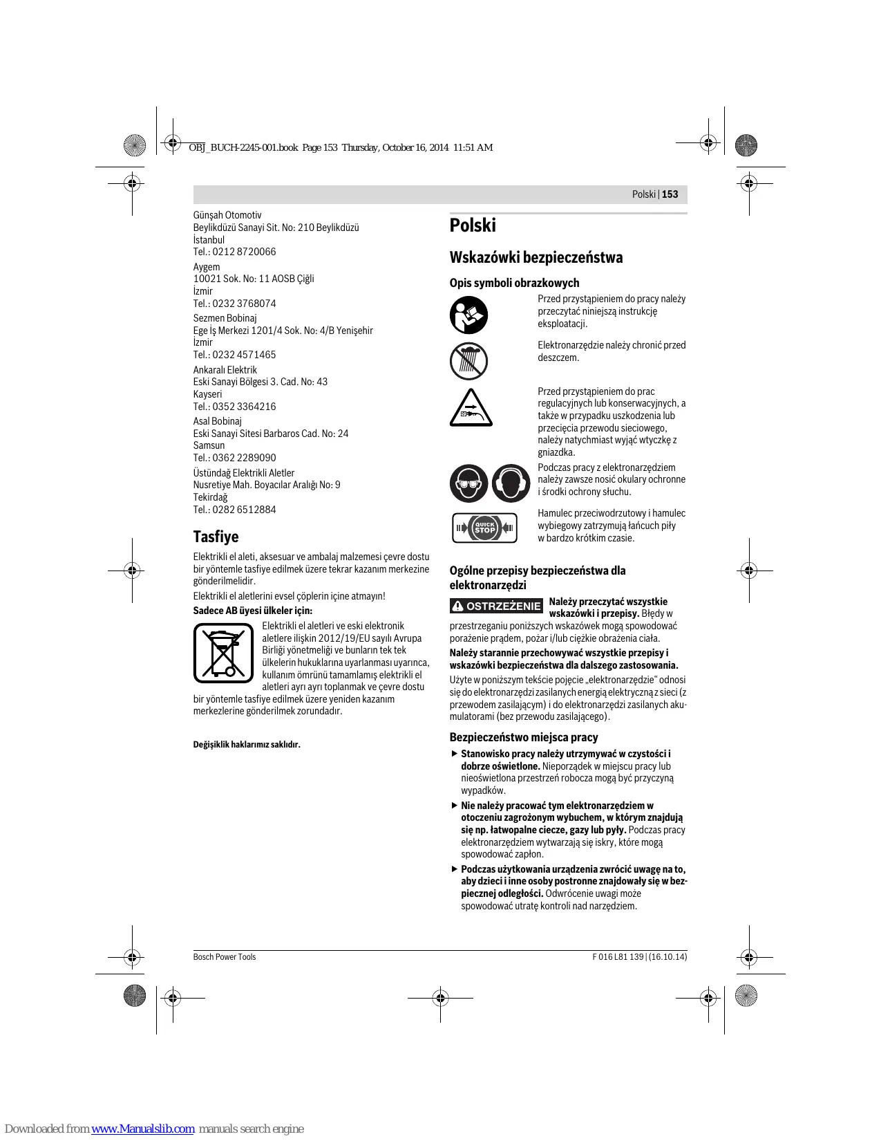 Le Service Clientèle Bosch Outillage Electroportatif Tel. : 0811 360122 (coût d’une communication locale) Fax : (01) 49454767 Ne jetez pas les outils électroportatifs avec les ordures ménagères ! F 016 L81 139 | (16.10.14)