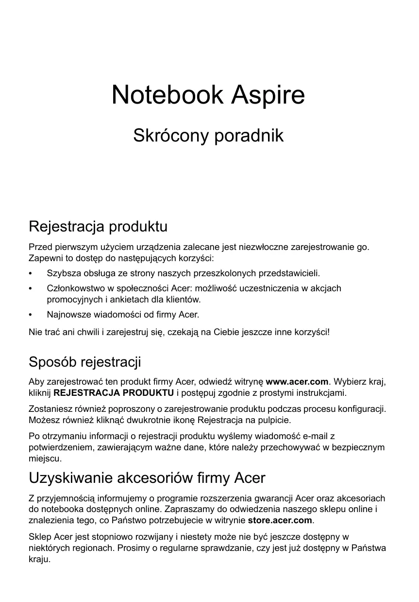 ASPIRE V5-171 - Laptop ACER - Bezpłatna instrukcja obsługi
