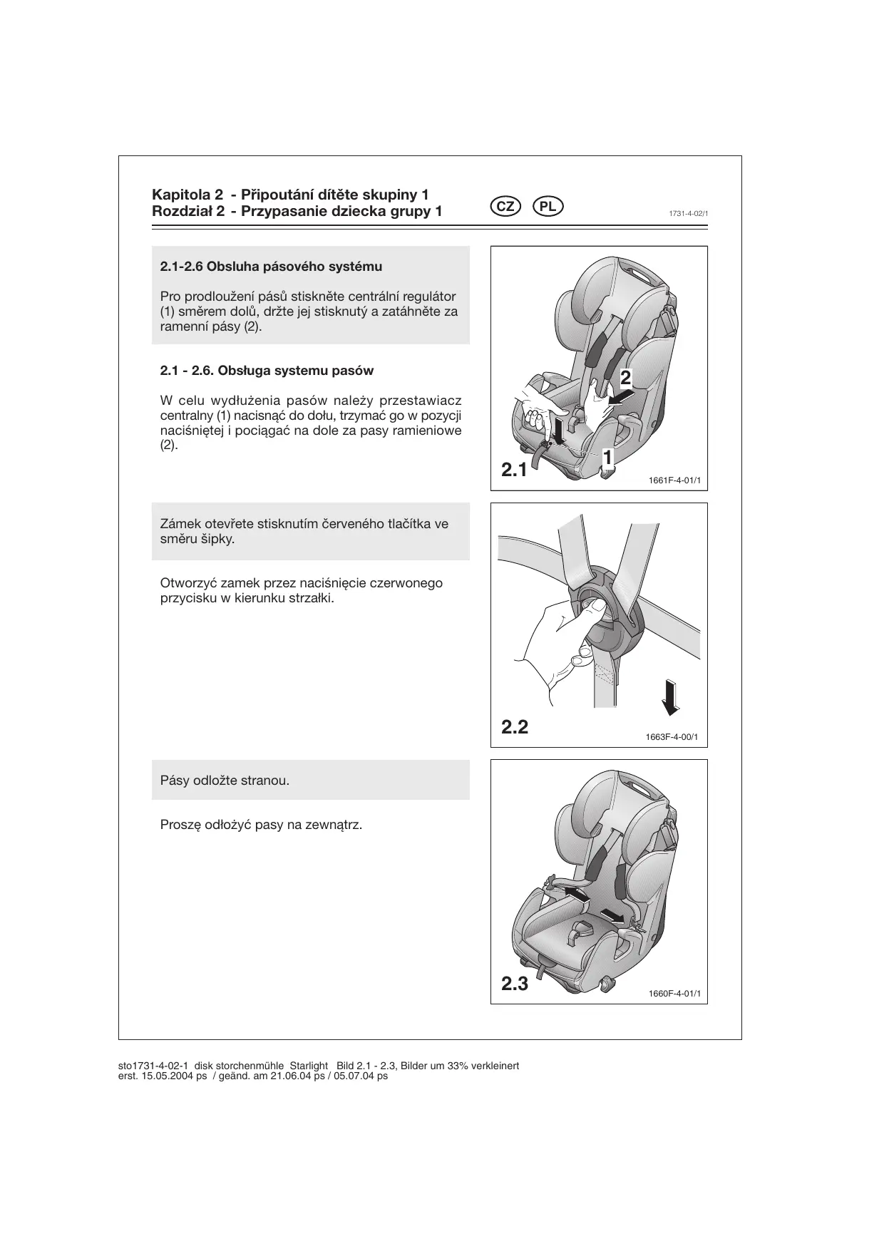 Le rabaisseur de siège doit être retiré, selon la taille de l’enfant. Cependant, au plus tard quand le système de ceinture est démonté. Si le système de ceinture est encore monté, glisser d’abord la ceinture d’épaule comme sur l’ill. 3.3. Boutonner la housse et tirer les deux parties de la housse vers l’avant.
