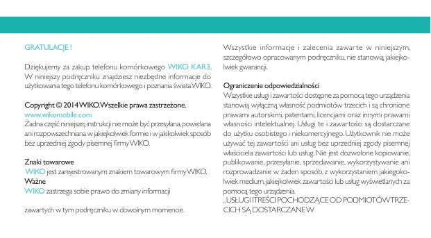 KAR 3 LS - Telefon komórkowy WIKO - Bezpłatna instrukcja obsługi