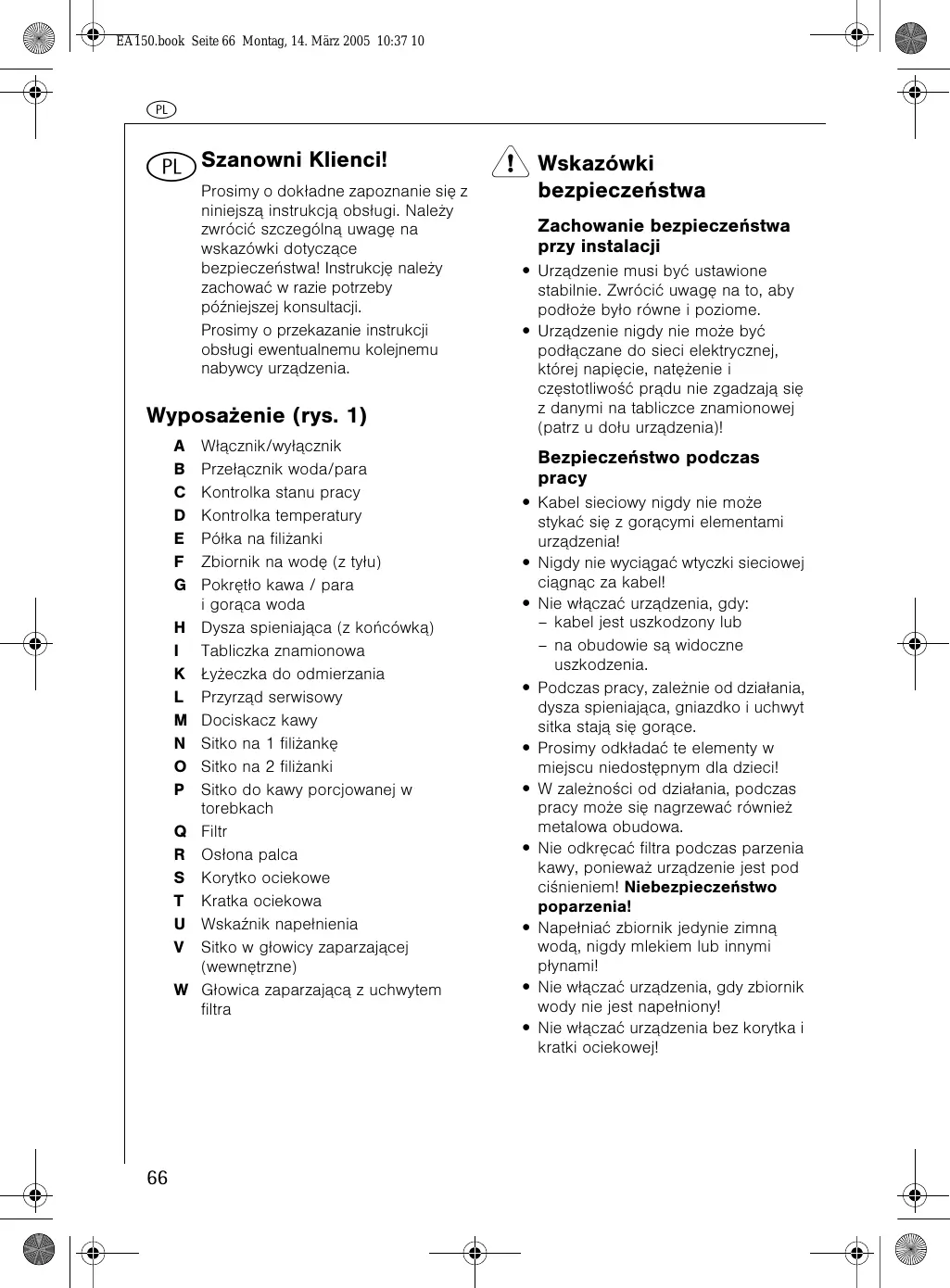 - Nie odkrećać filtra podczas parzenia kawy, poniewaź urzadzenia jest pod ciśnieniem! Niebezpieczeństwo poparzenia!