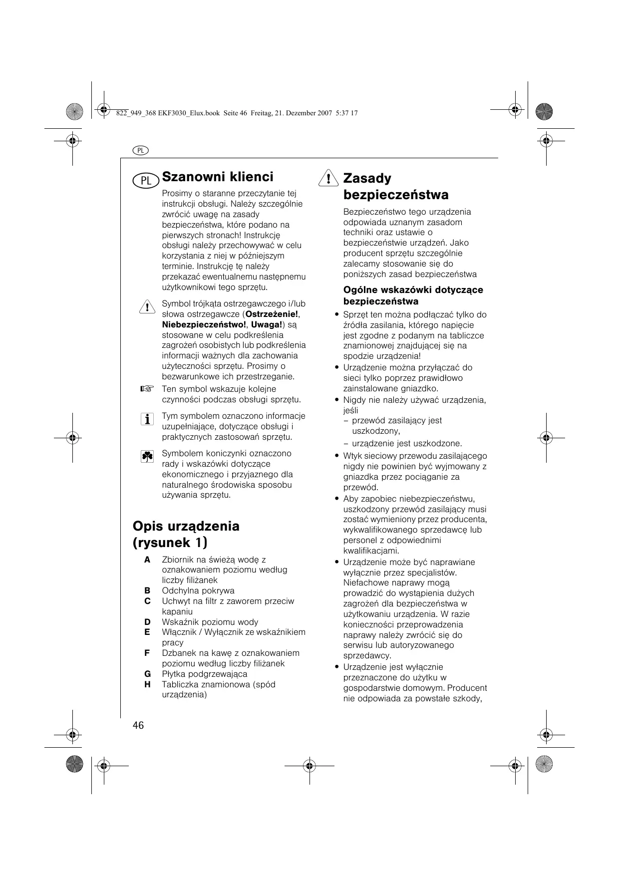 - Urz¹dzenie jest wy³¹cznie przeznaczone do u¿ytku w gospodarstwie domowym. Producent nie odpowiada za powsta³e szkody, 822_949_368 EKF3030_Elux.book Seite 47 Freitag, 21. Dezember 2007 5:37 17