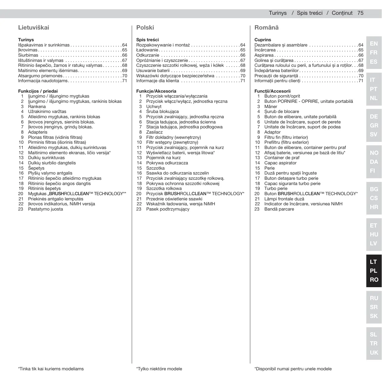 Ritinio šepečio valymas naudiojant funkcjă „BRUSHROLLCLEAN™ TECHNOLOGY“/Czyszczenie rolki szczotki przy užyciu Funktioni BRUSHROLLCLEAN™ TECHNOLOGY / Curățarea periei rolă cu functția BRUSHROLLCLEAN™ TECHNOLOGY