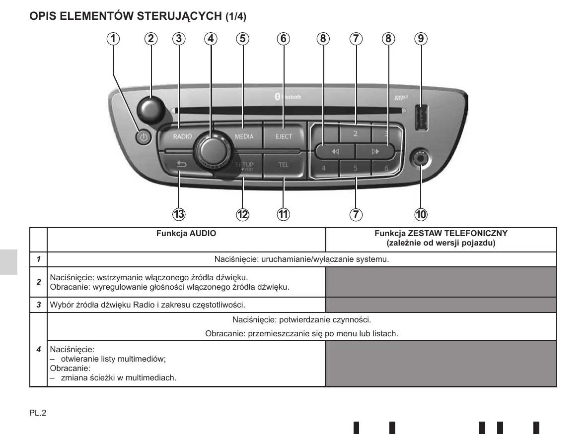 MEDIA | EJECT Funkcja AUDIO Funkcja ZESTAW TELEFONICZNY