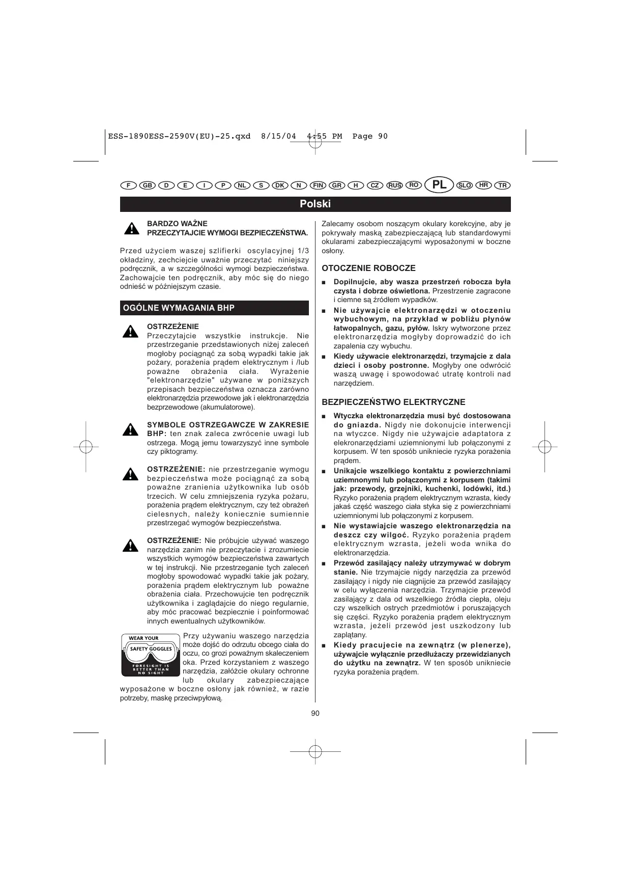 PRZECZYTAJCIE WYMOGI BEZPIECZEŃSTWA. Zalecamy osobom noszącym okulary korekcyjne, aby je pokrywały maską zabezpieczającą lub standardowymi okularami zabezpieczającymi wyposażonymi w boczne osłony. Przed użyciem waszej szlifierki oscylacyjnej 1/3 okładziny, zechciejcie uważnie przeczytać niniejszy podręcznik, a w szczególności wymogi bezpieczeństwa. Zachowajcie ten podręcznik, aby móc się do niego odnieść w późniejszym czasie. OTOCZENIE ROBOCZE