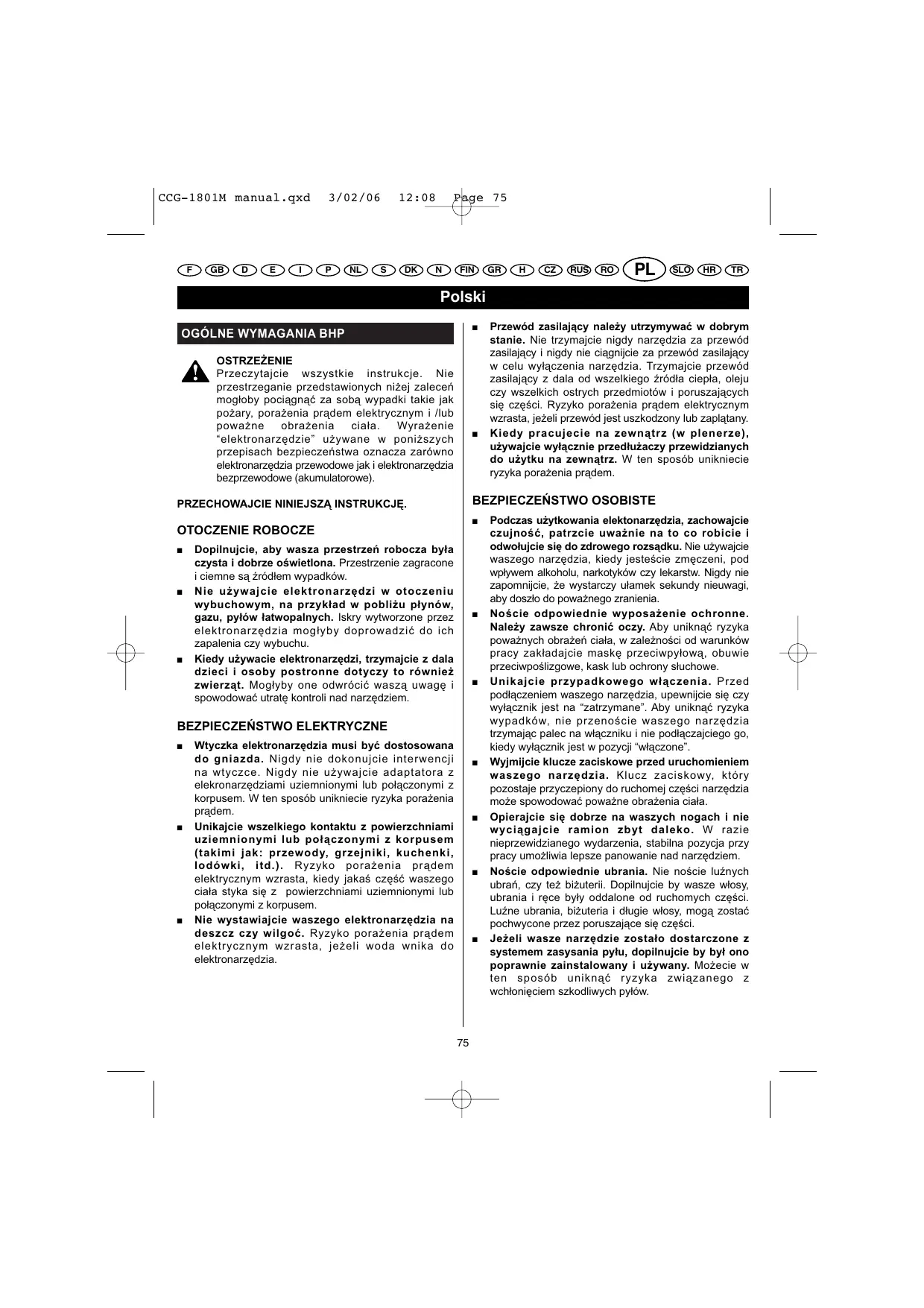 Znajdź bezpłatnie instrukcję urządzenia CCG-1801M RYOBI w formacie PDF.