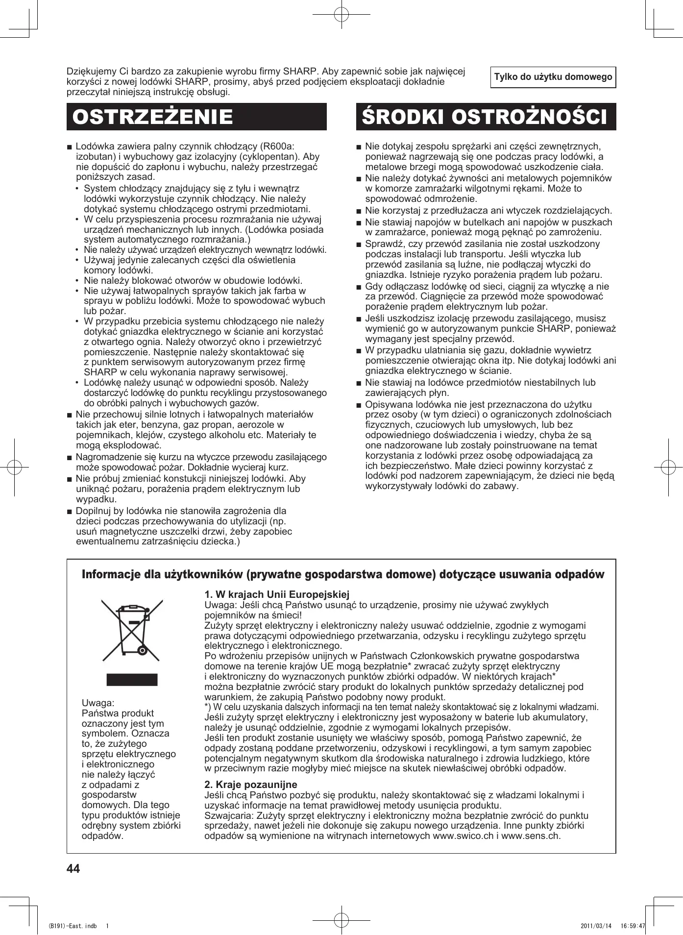 SJ-SC440V - Lodówka SHARP - Bezpłatna instrukcja obsługi