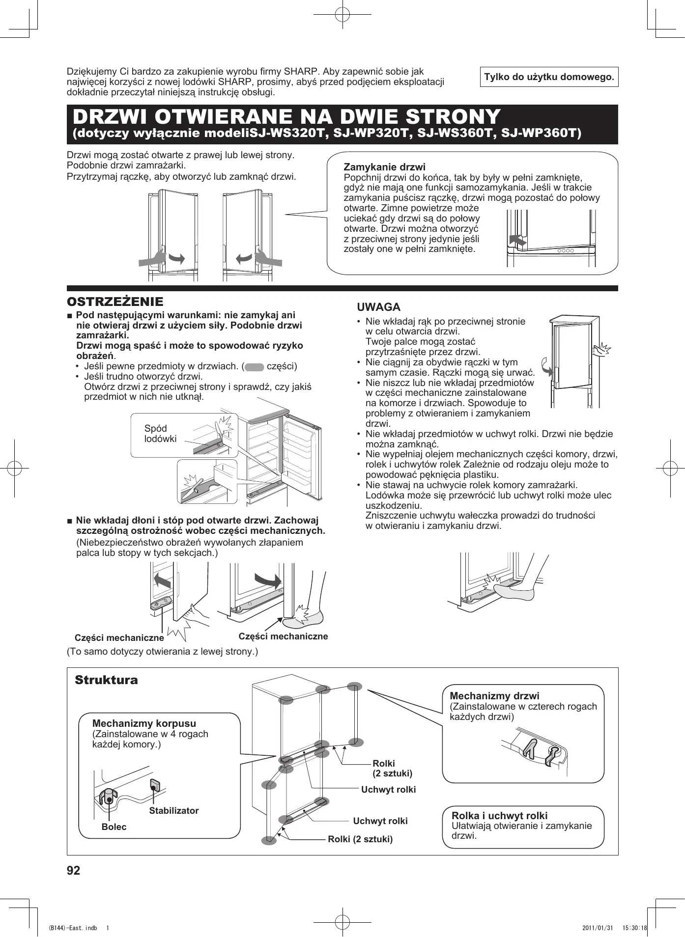 SJ-WP360T - Lodówka SHARP - Bezpłatna instrukcja obsługi
