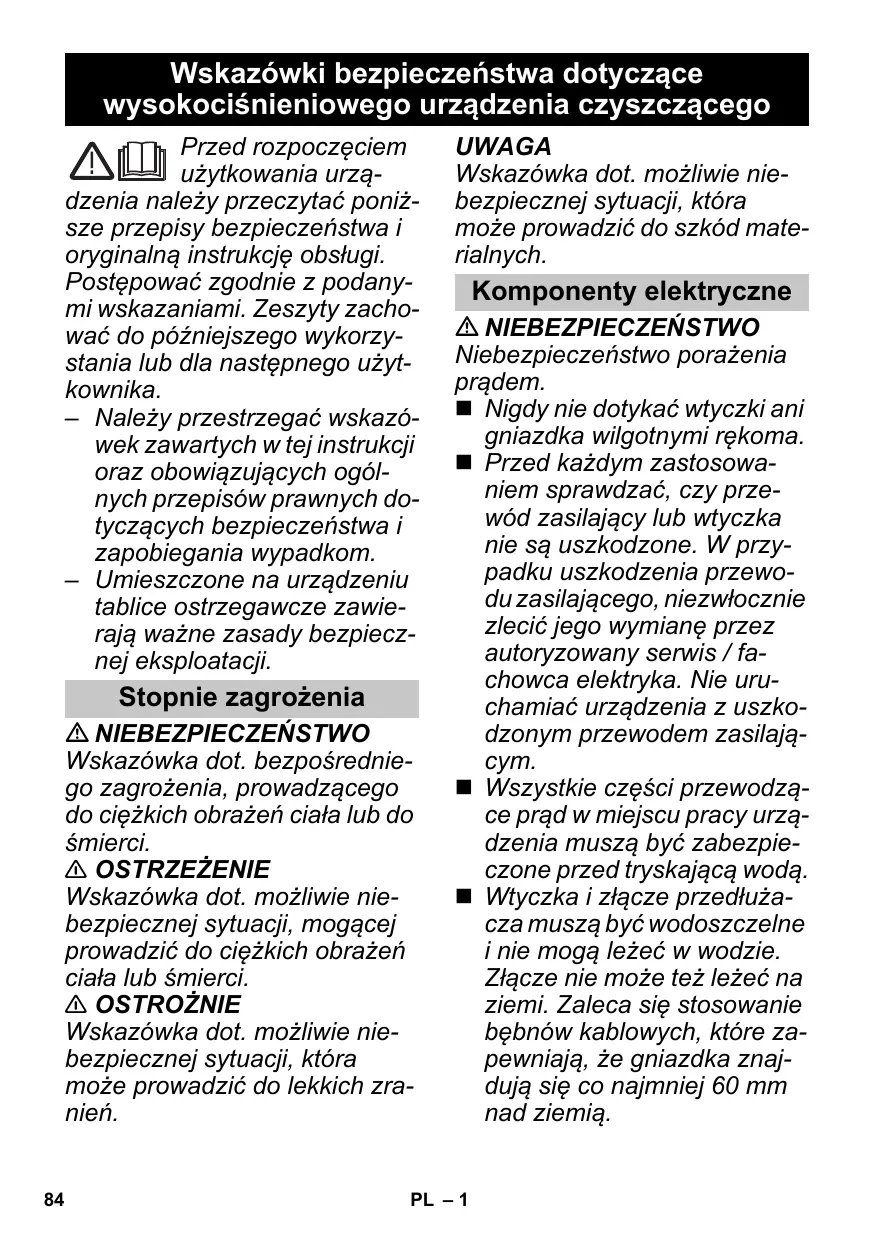 Wskazowki bezpieczeñstwa dotyczace wysokoci$nieniowego urzadzenia czyszczacego