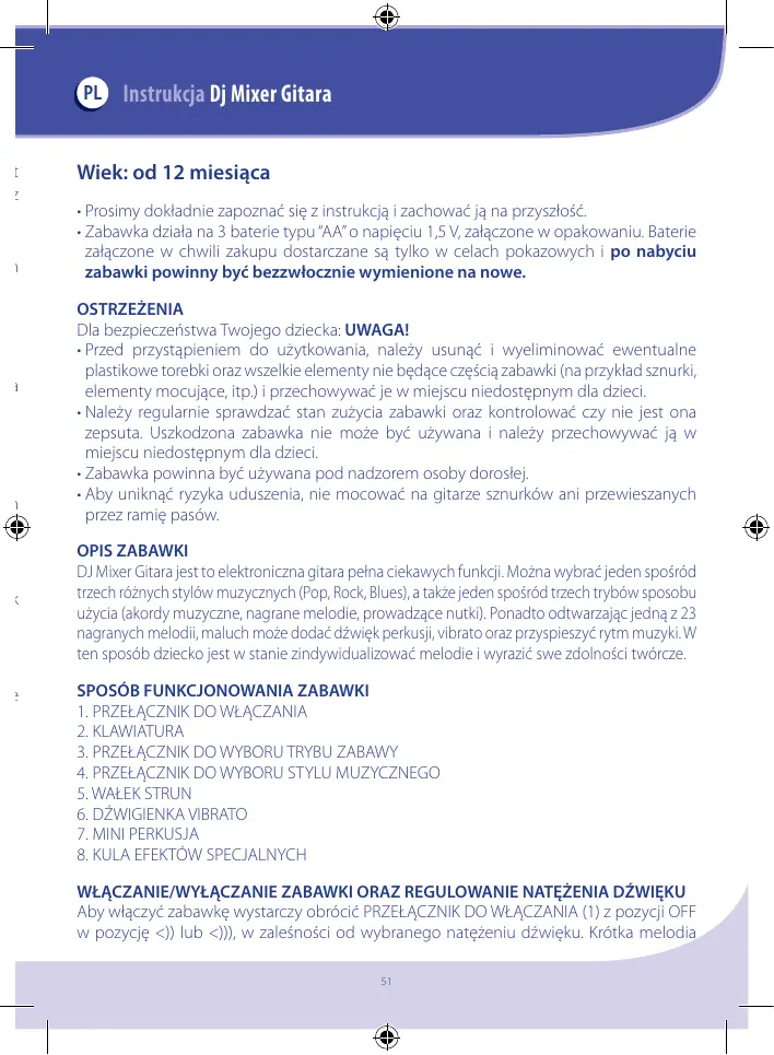 DJ MIXER GUITAR - Zabawka muzyczna CHICCO - Bezpłatna instrukcja obsługi