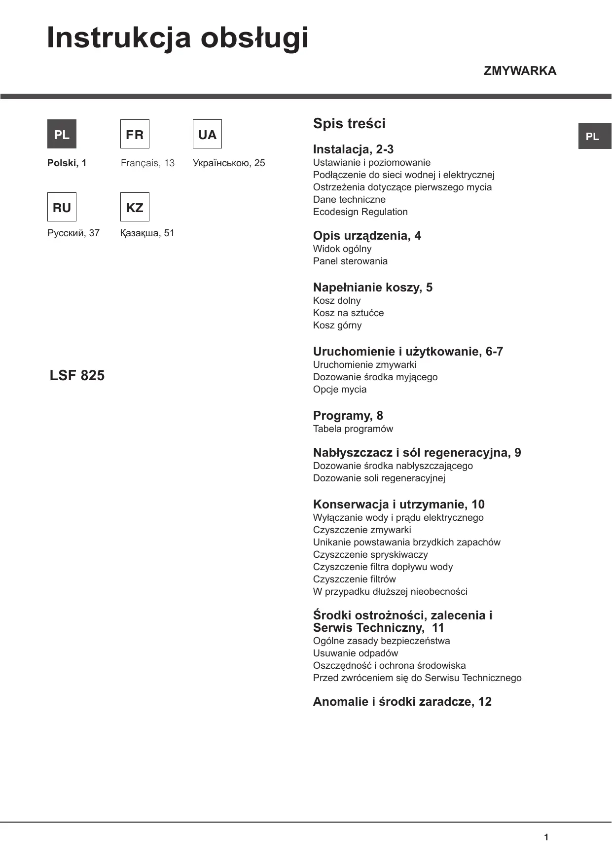 LSF 825 X/HA - Zmywarki HOTPOINT - Bezpłatna instrukcja obsługi