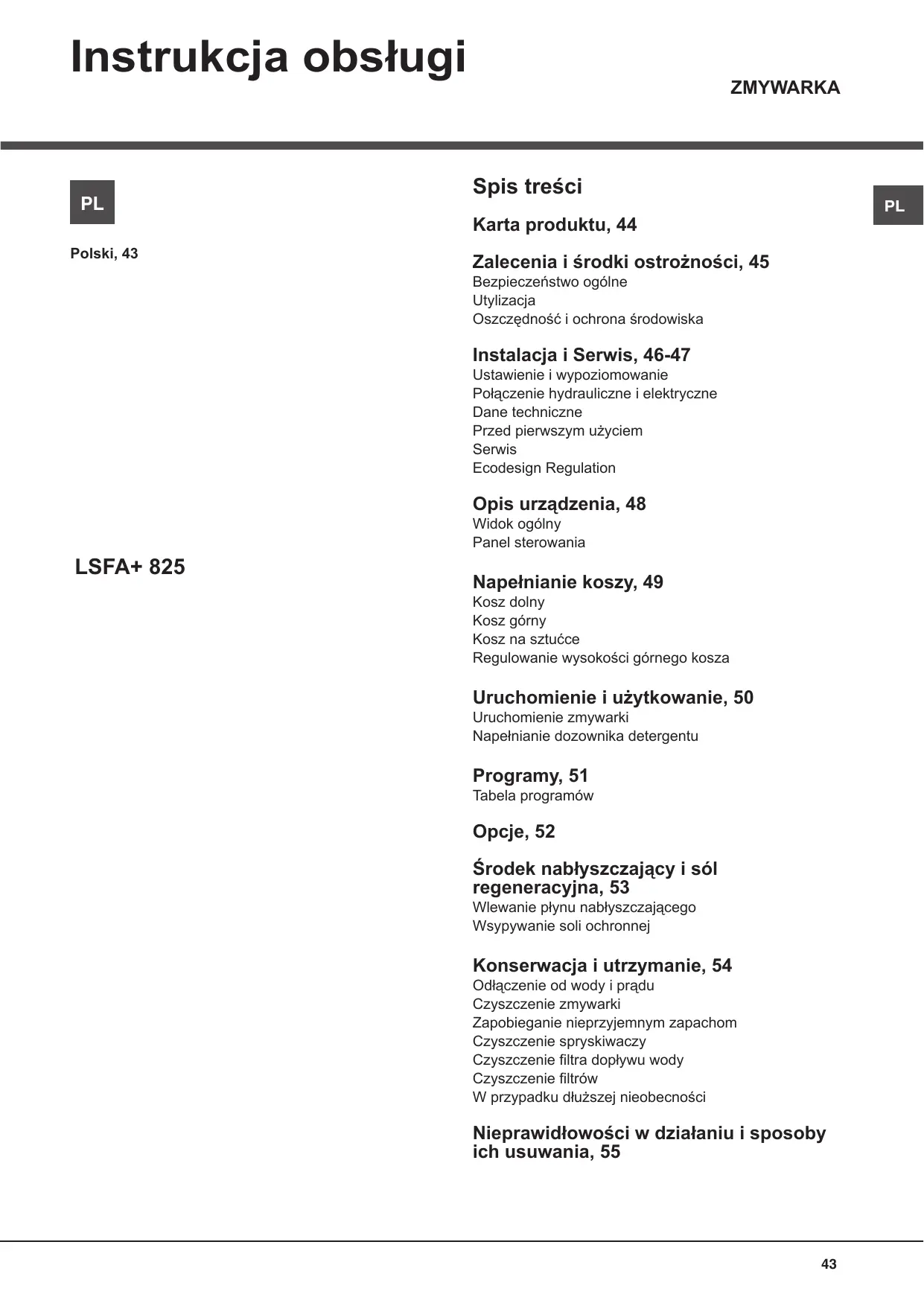 LSFA 825 HA - Zmywarki HOTPOINT - Bezpłatna instrukcja obsługi