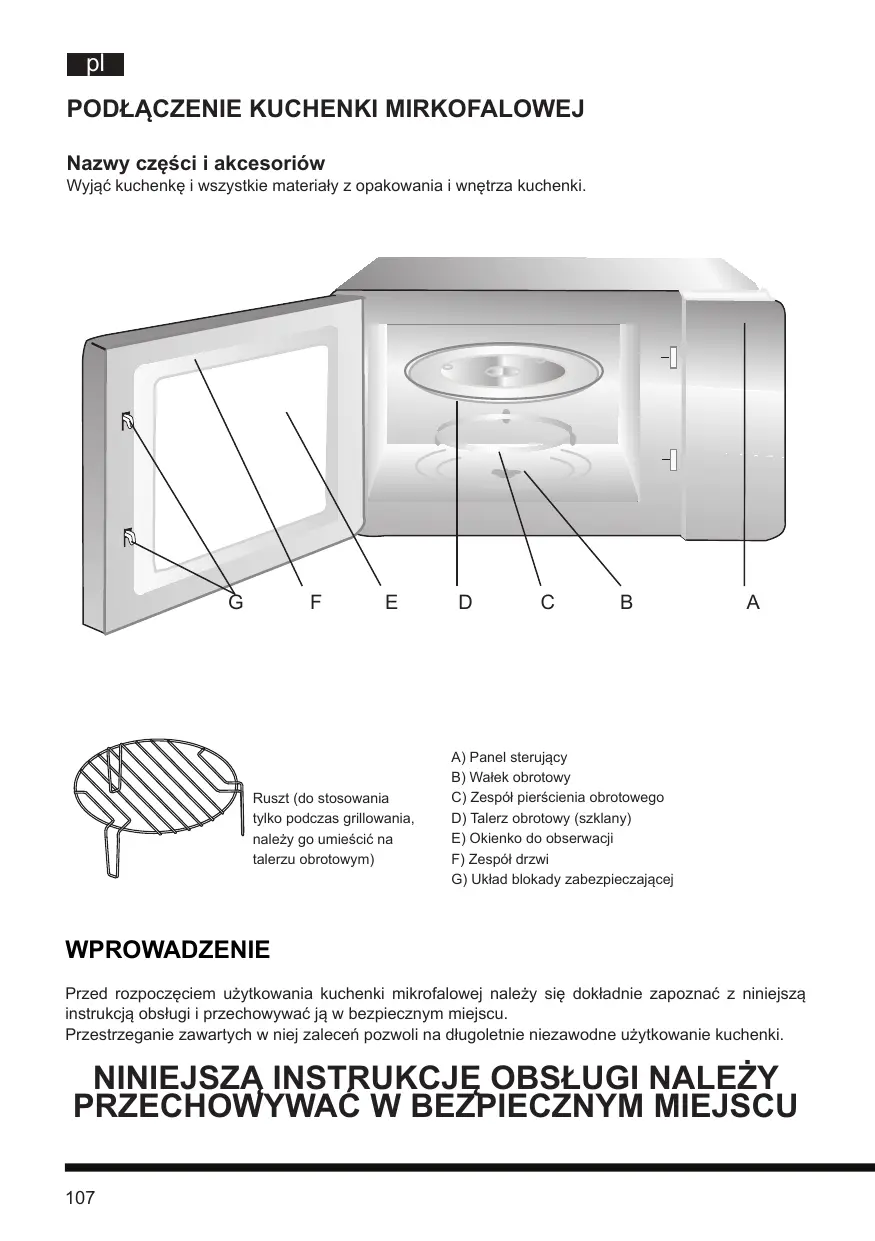 pl PODŁĄCZENIE KUCHENKI MIRKOFALOWEJ Nazwy części i akcesoriów