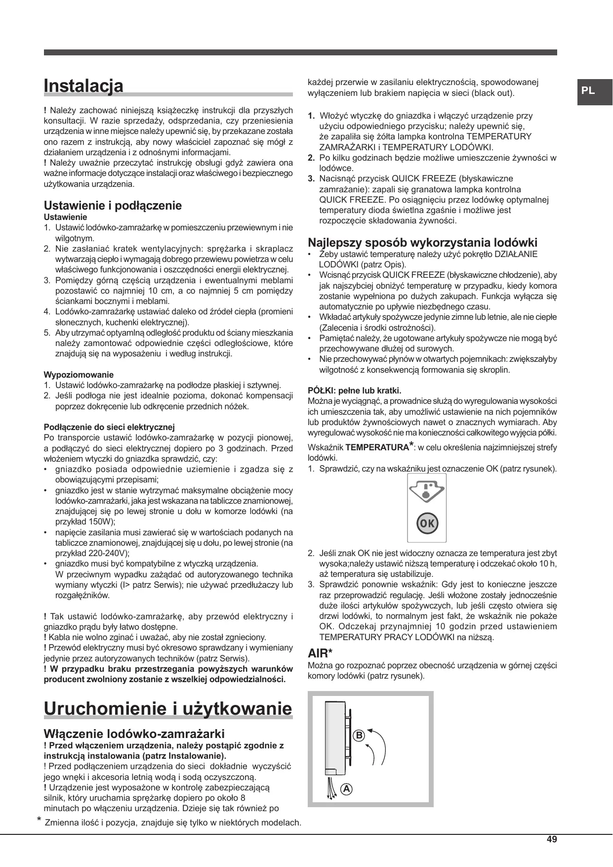Wskaźnik TEMPERATURA*: w celu określenia najzimniejszej strefy lodówki. 1. Sprawdzić, czy na wskaźniku jest oznaczenie OK (patrz rysunek).