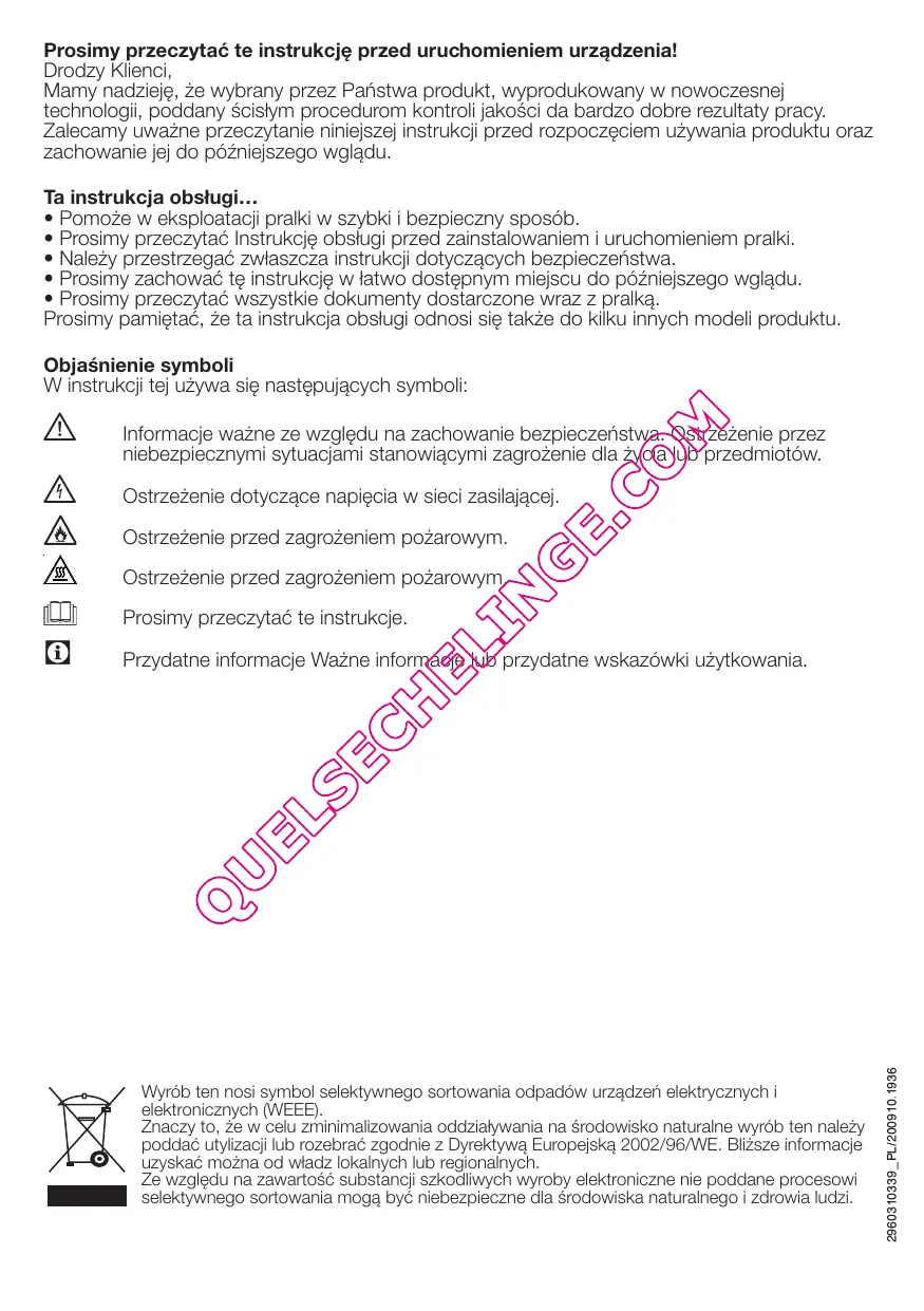 Les linges réalisés dans des tissus délicats ainsi que les rideaux en dentelle peuvent se froisser. Ne les séchez pas dans la machine !