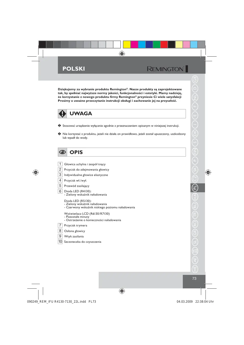 Znajdź bezpłatnie instrukcję urządzenia R7130 REMINGTON w formacie PDF.