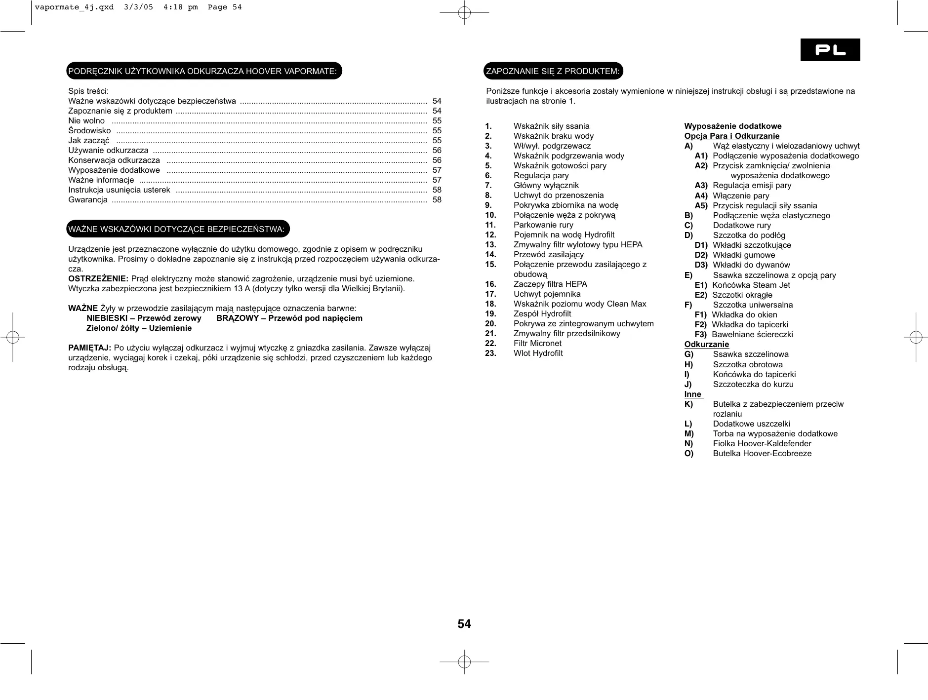 INSTRUKCJA OBSŁUGI VAPORMATE HOOVER